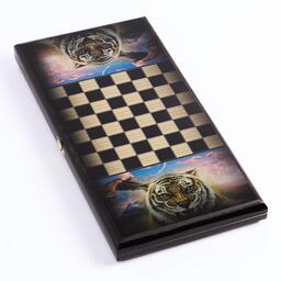 УЦЕНКА Нарды "Звери", деревянная доска 50x50/60х60 см, с полем для игры в шашки, микс
