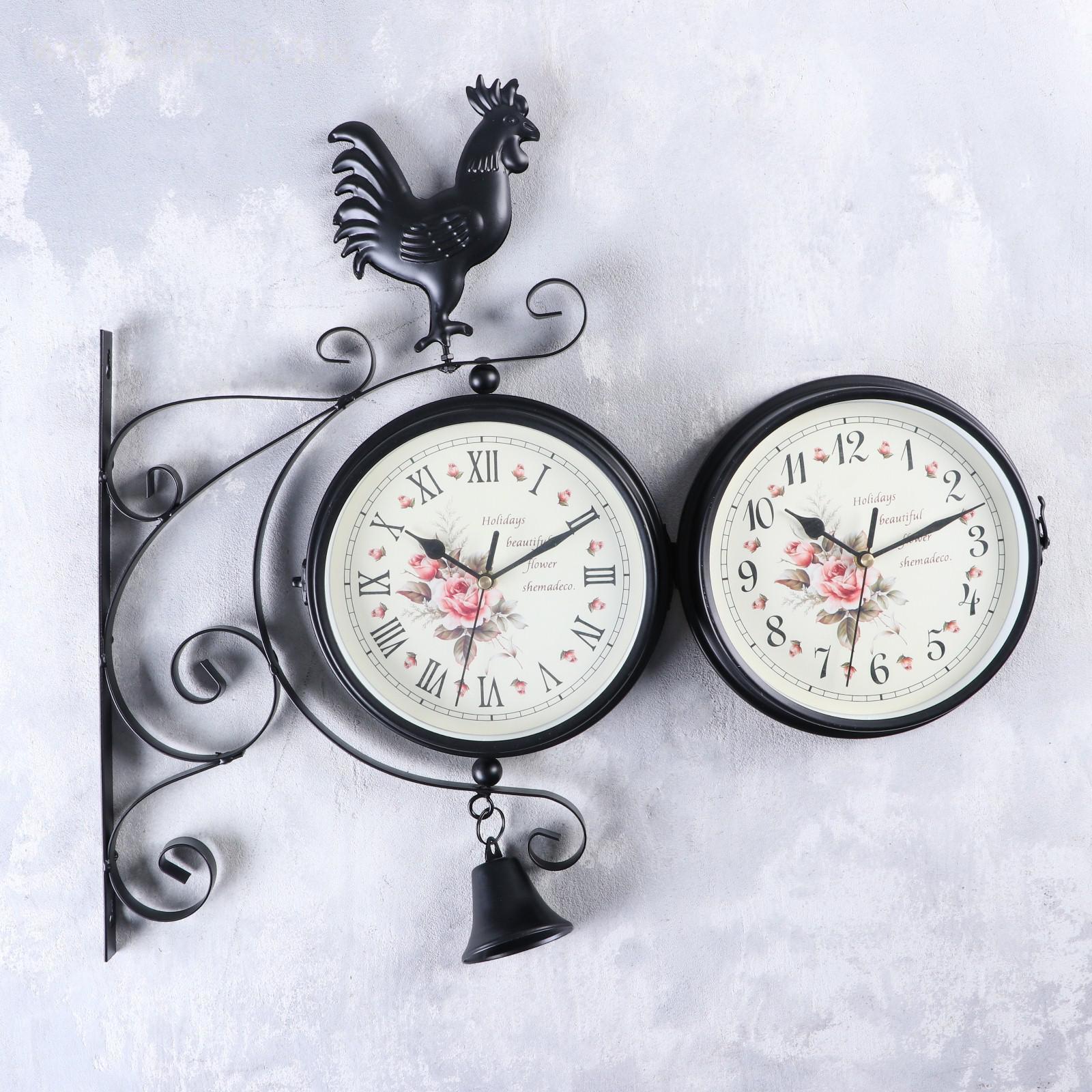 Часы настенные двусторонние, на подвесе "Флюгер", плавный ход, d-19 см, 48 х 32 см, 2 АА