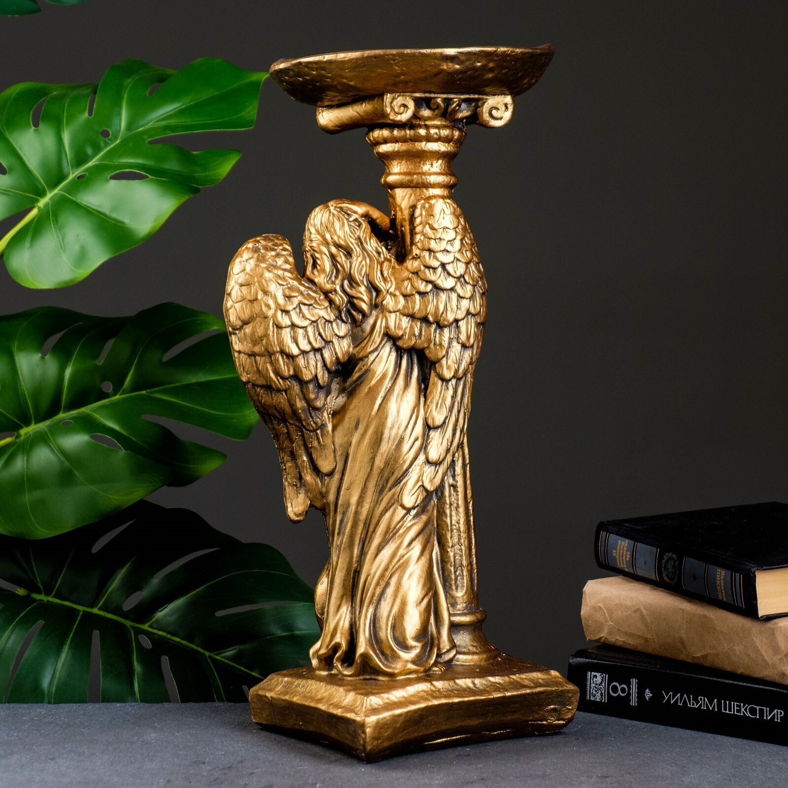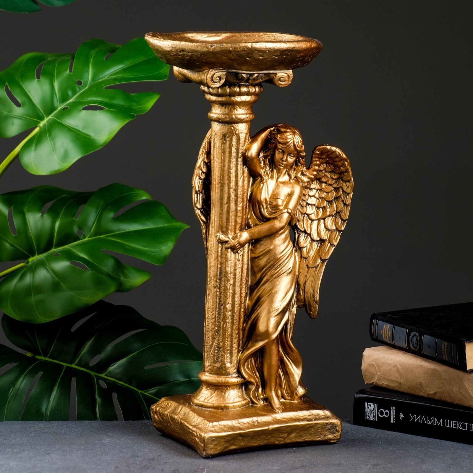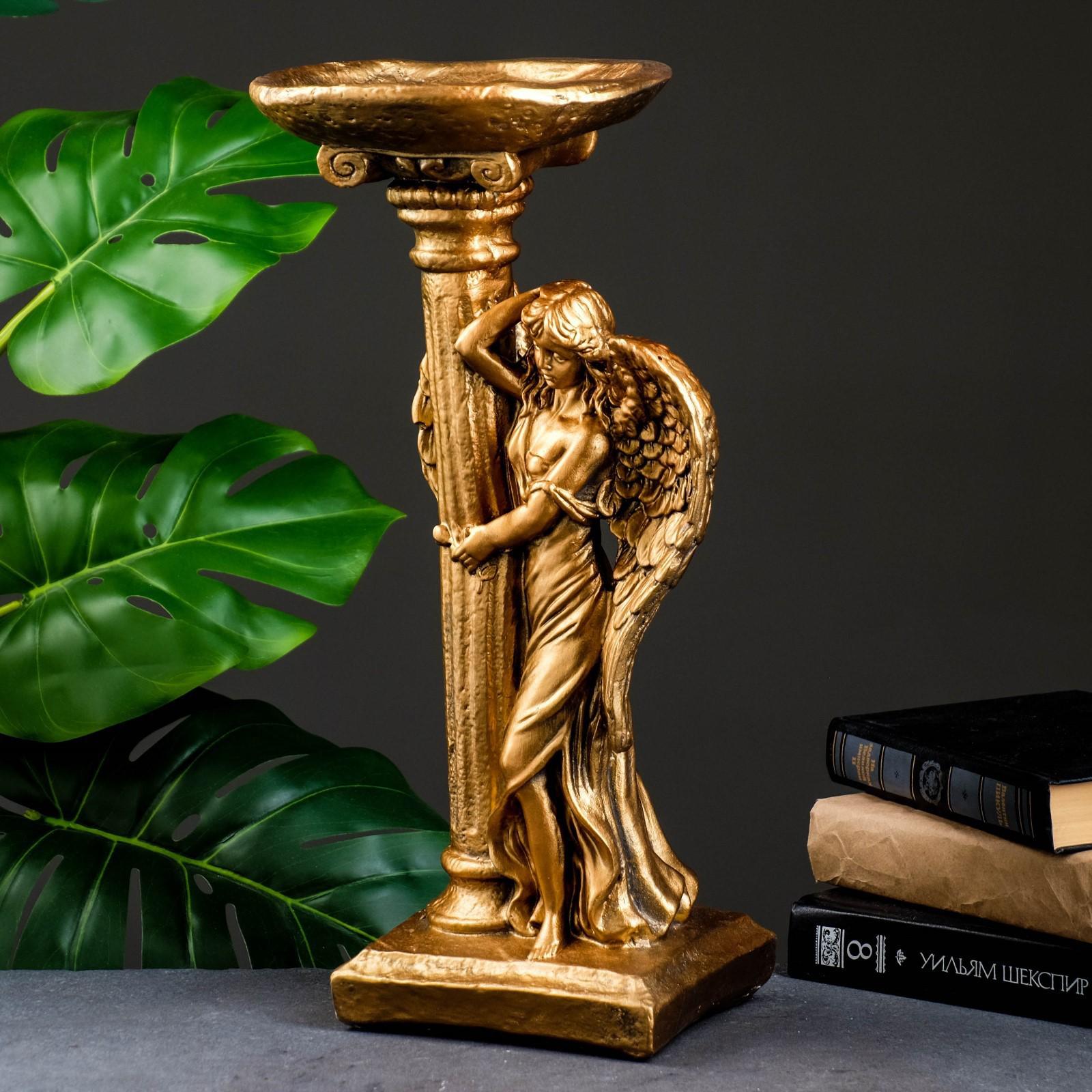 Фигура "Ангел девушка у колонны" бронза 18х23х42см