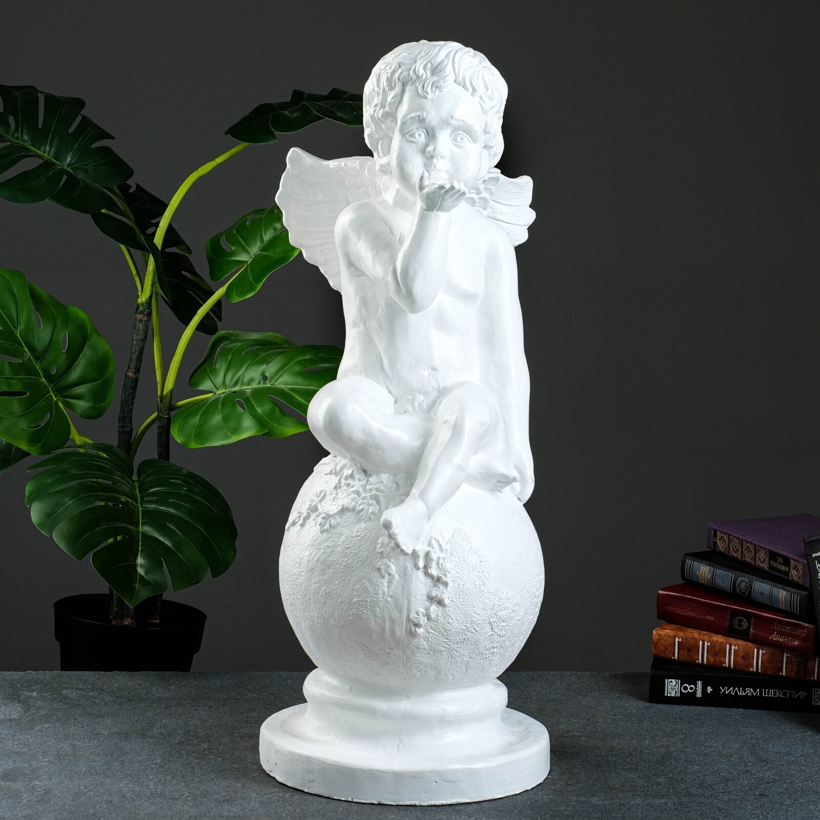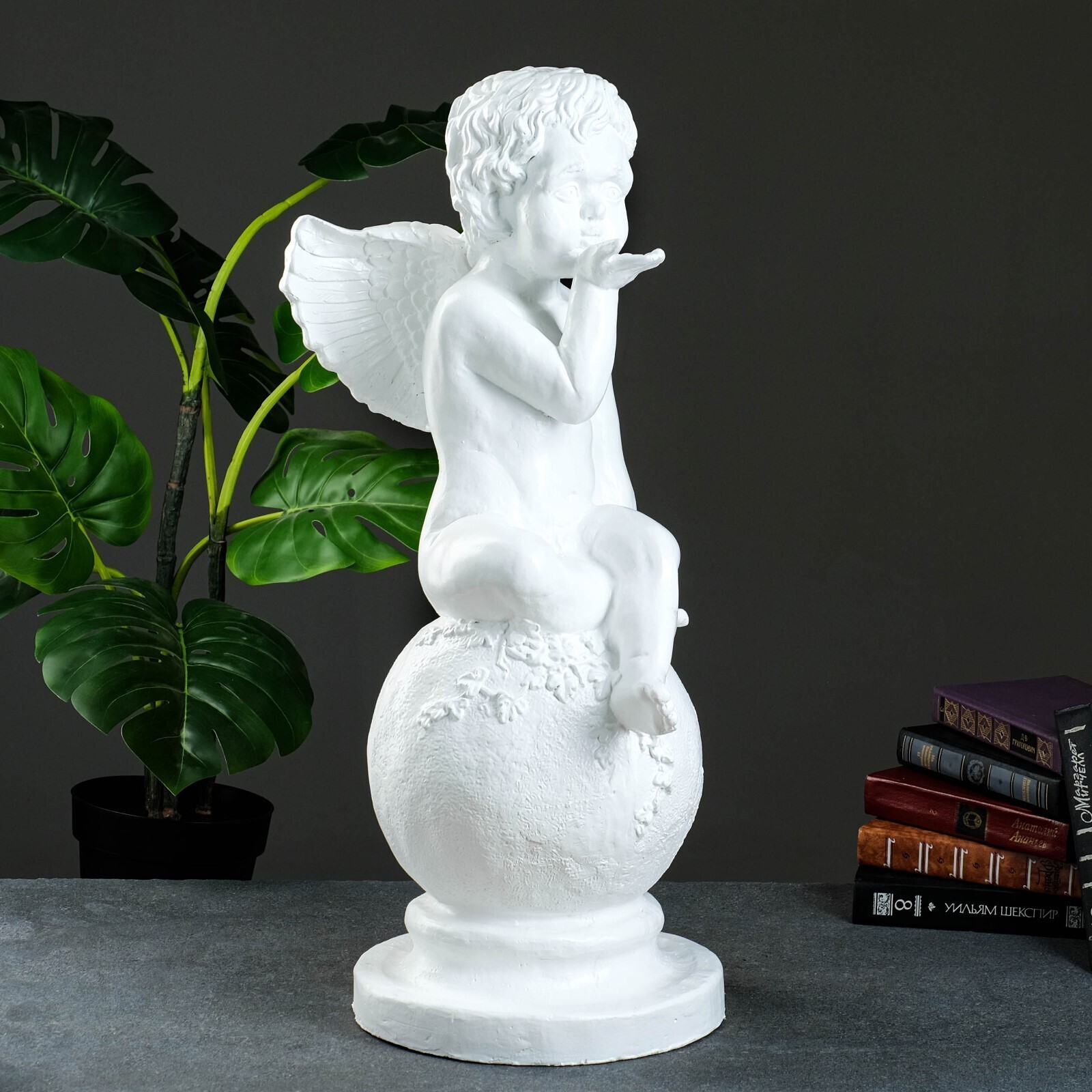 Фигура "Ангел на шаре огромная" белый 36х24х72см