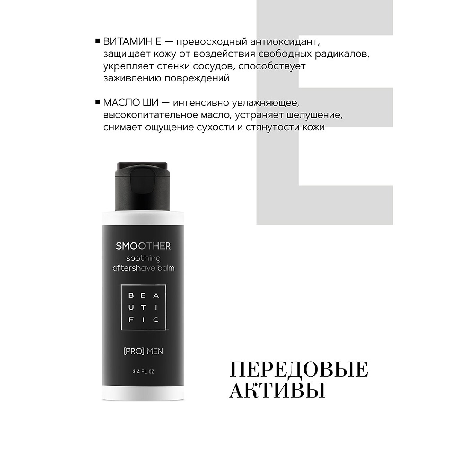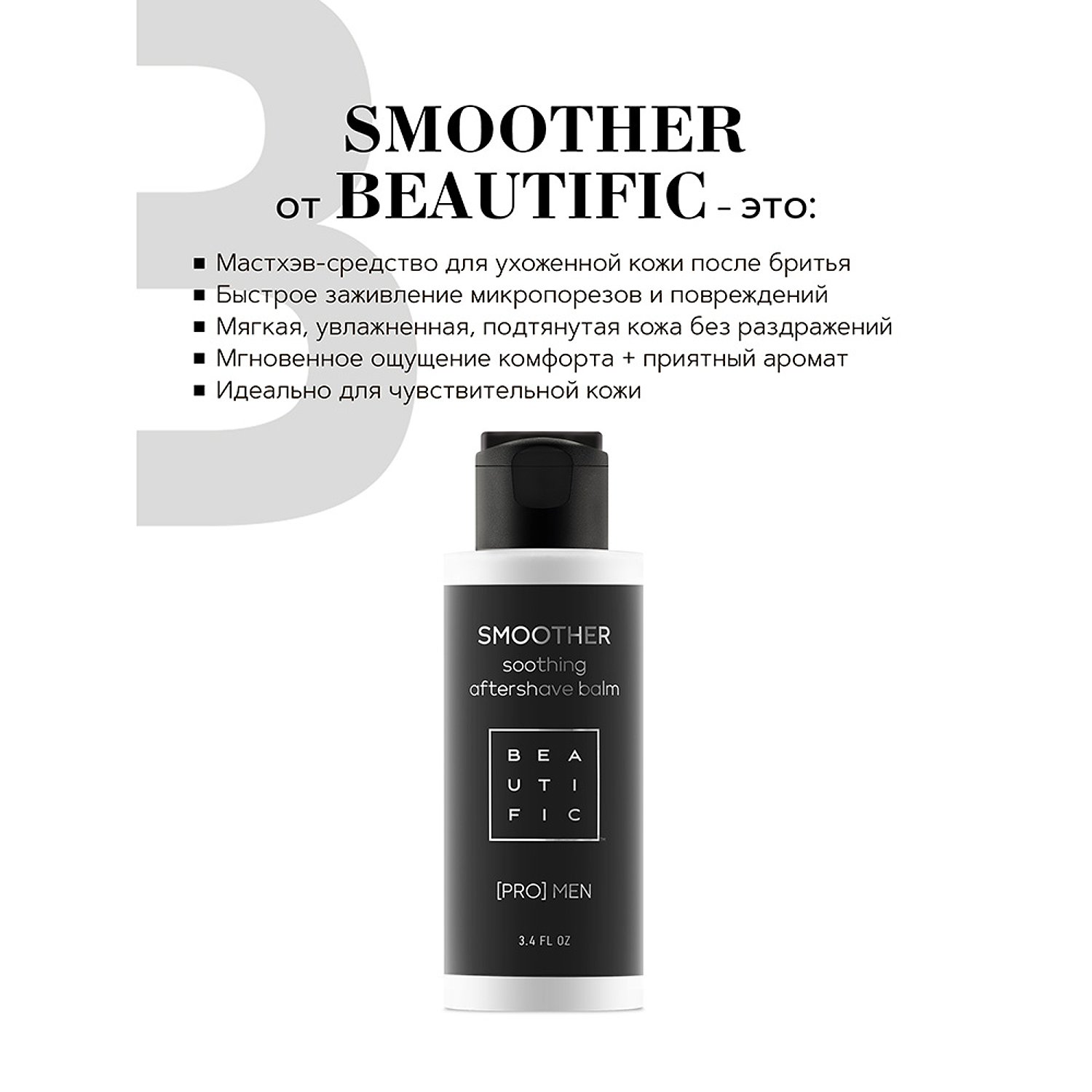 Бальзам после бритья BEAUTIFIC SMOOTHER мужской для чувствительной кожи с витамином Е без спирта 100мл BTF0411