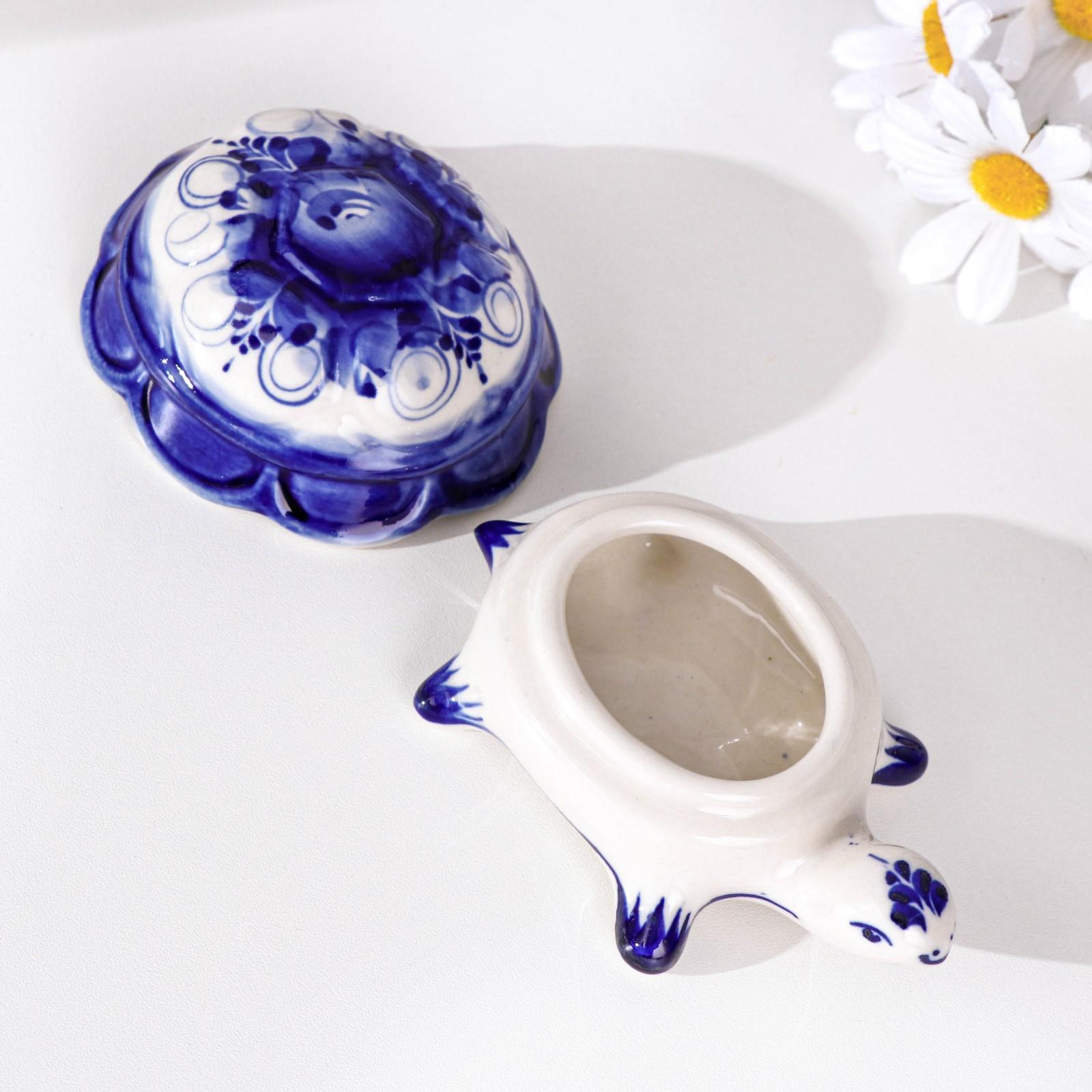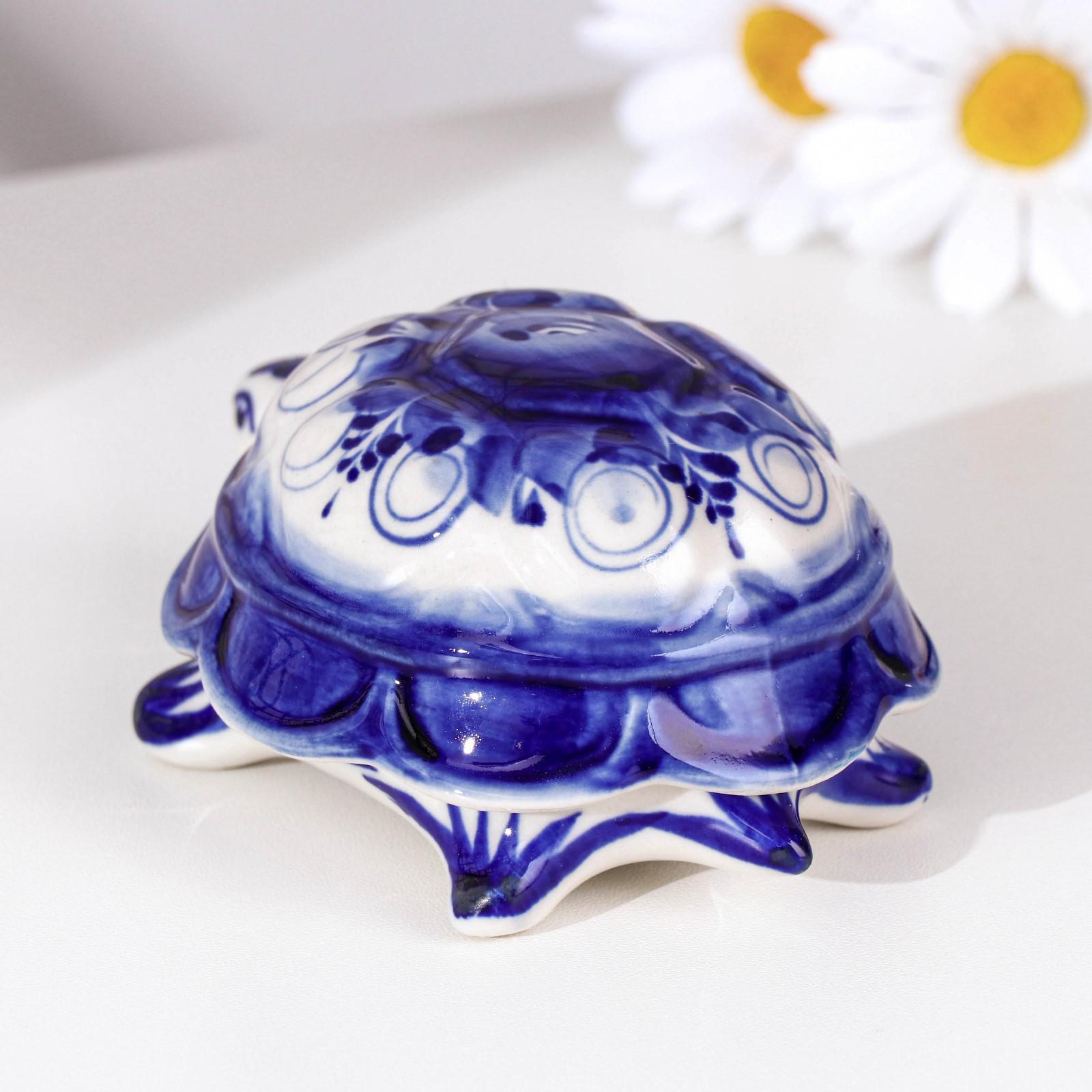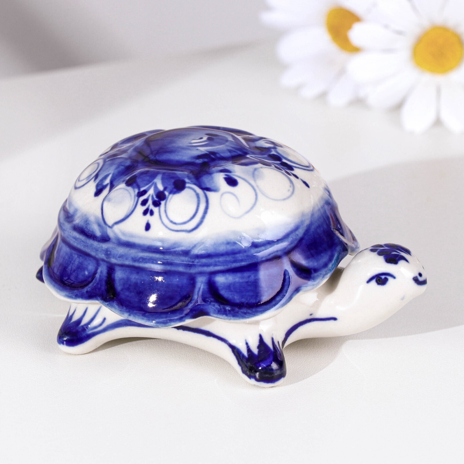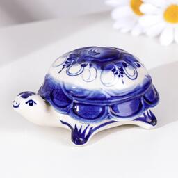 Шкатулка "Черепашка", гжель, фарфор, 5х11 см