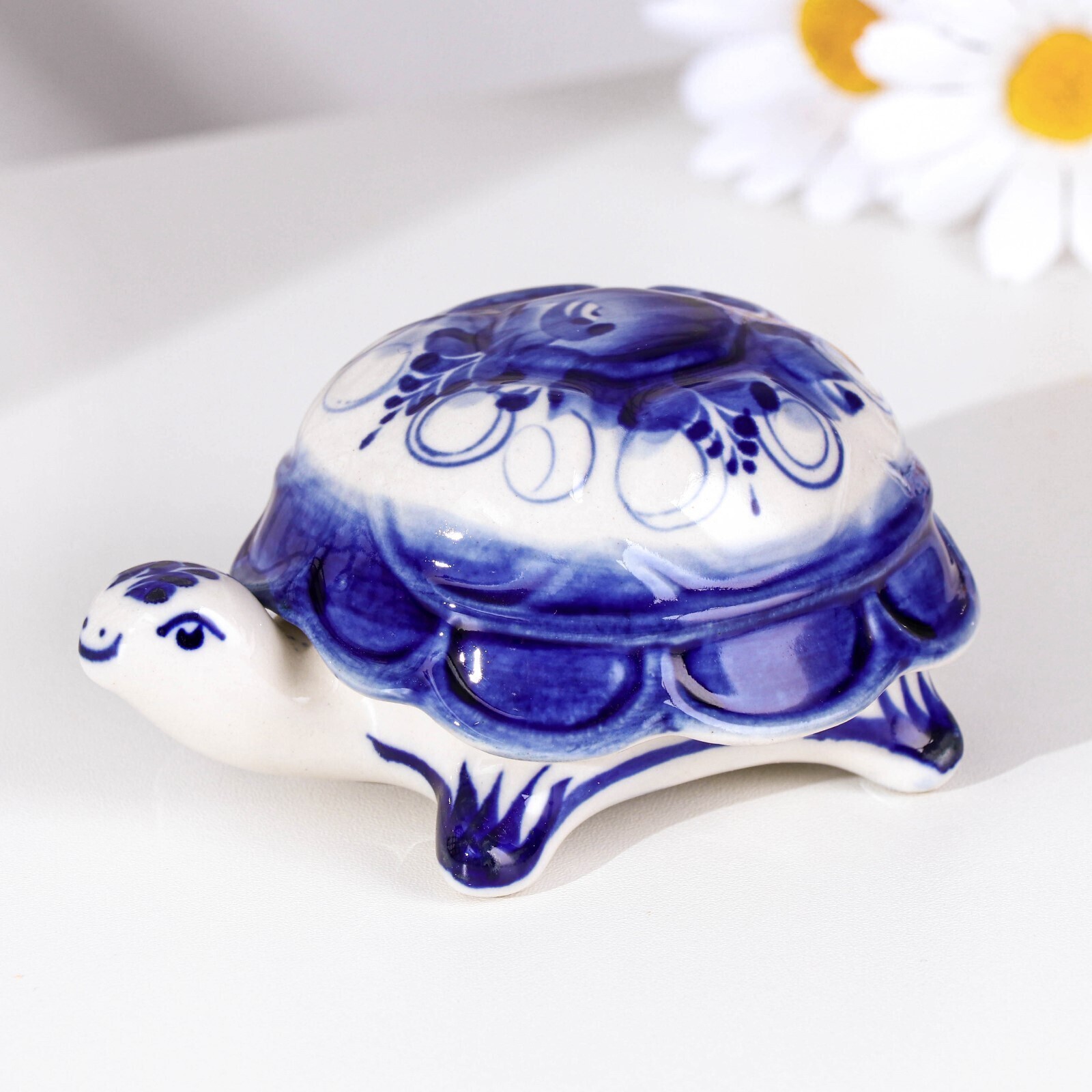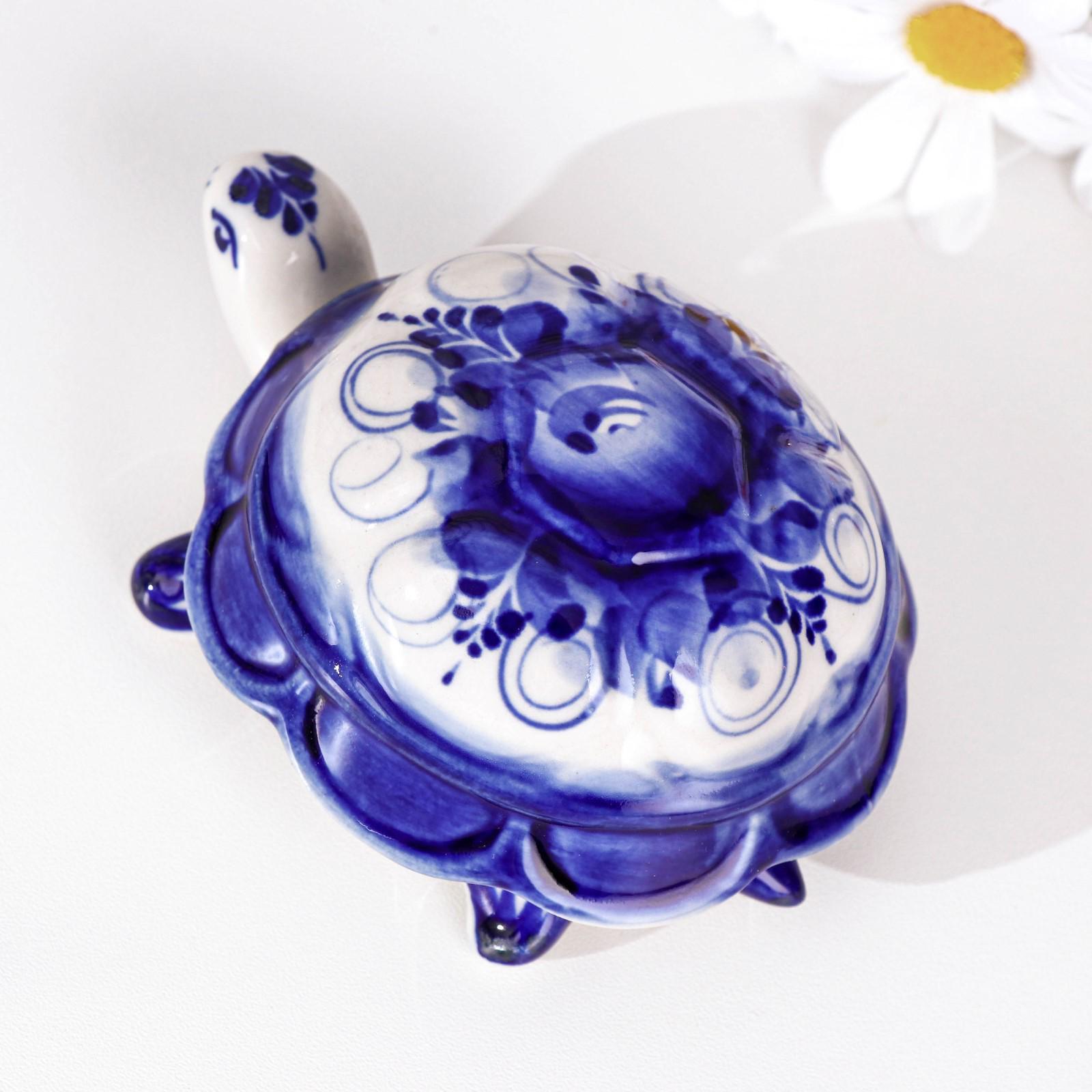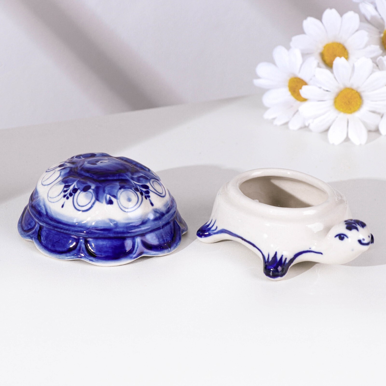 Шкатулка "Черепашка", гжель, фарфор, 5х11 см