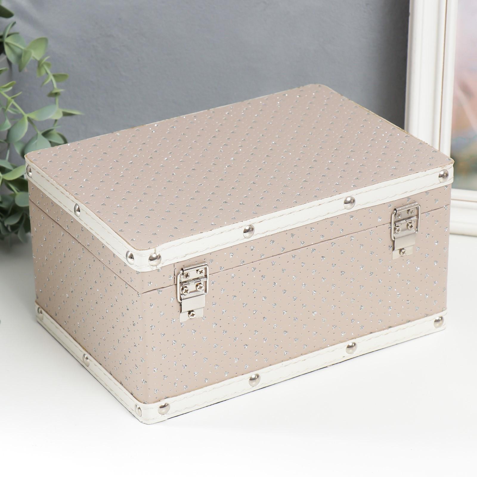 Шкатулка сундучок "Серебристые сердечки" 16х23х12 см