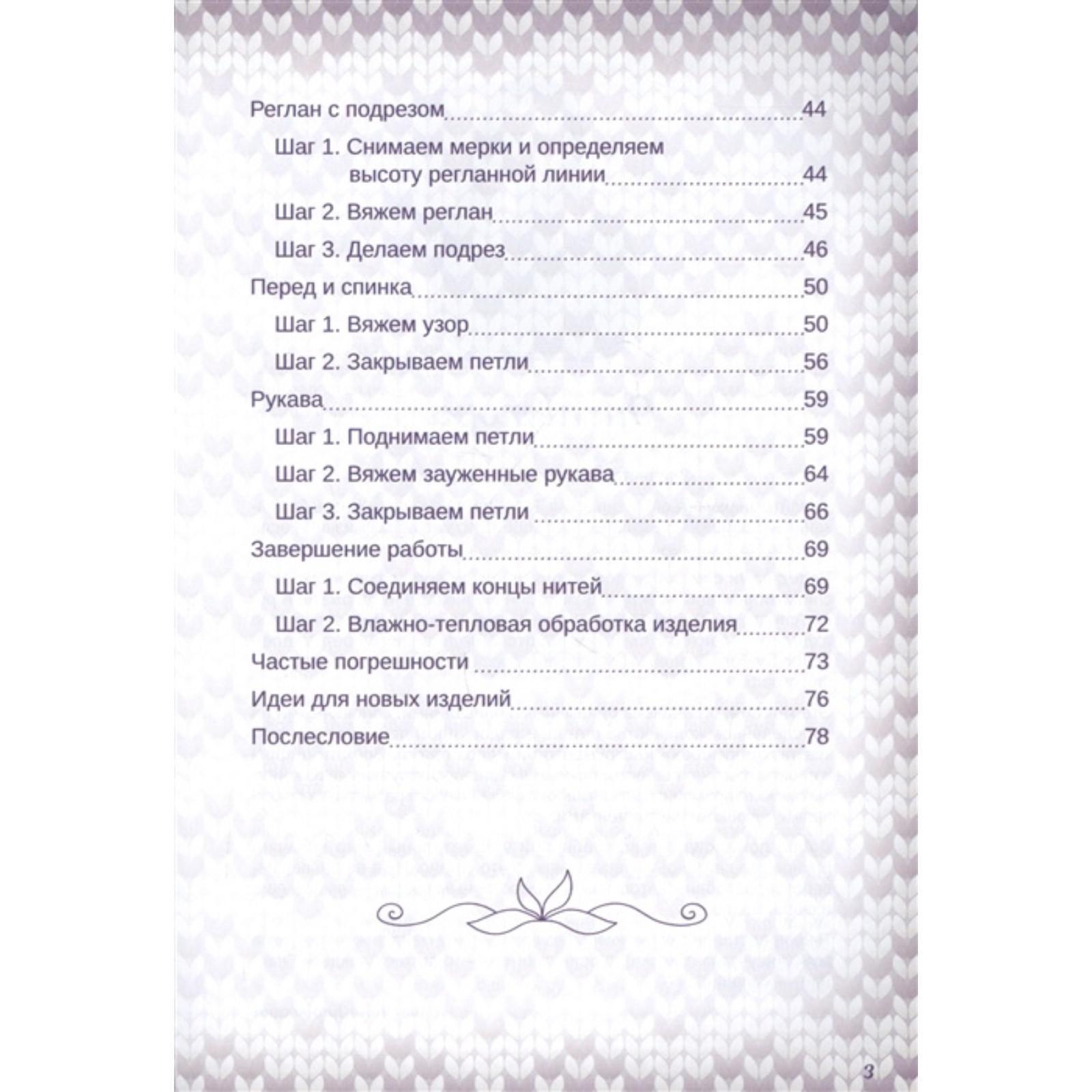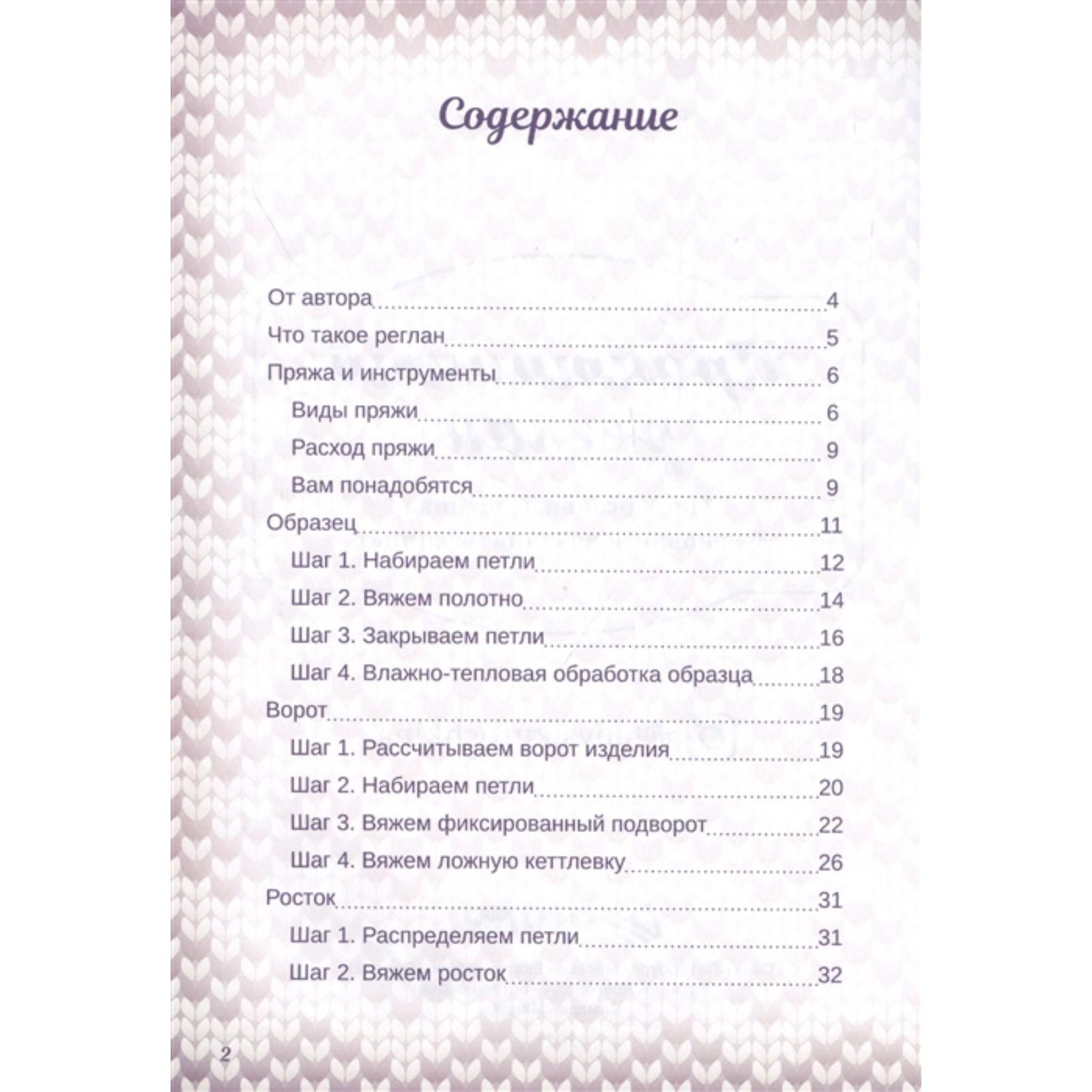 Книга известной вязальщицы Татьяны Курочкиной построена как детальный мастер-класс по упрощенному реглану, раскрывающий подробный алгоритм действий, порядок расчетов и личные секреты мастерства автора.