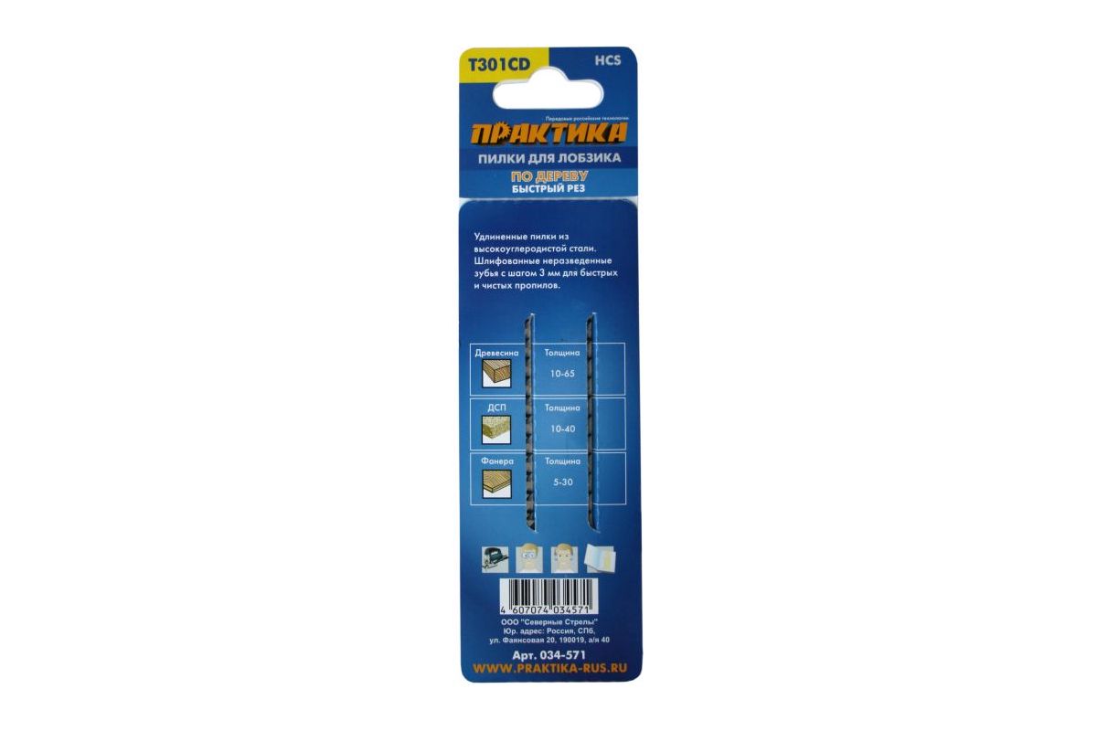 Пилки для лобзика ПРАКТИКА 034-571 T301CD 2шт.