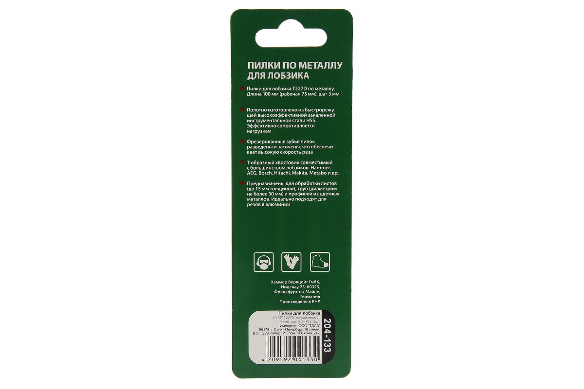 Пилка для лобзика Hammer Flex 204-133 JG MT T227D тонкий металл, 75мм, шаг 3.0, HSS, 2шт.
