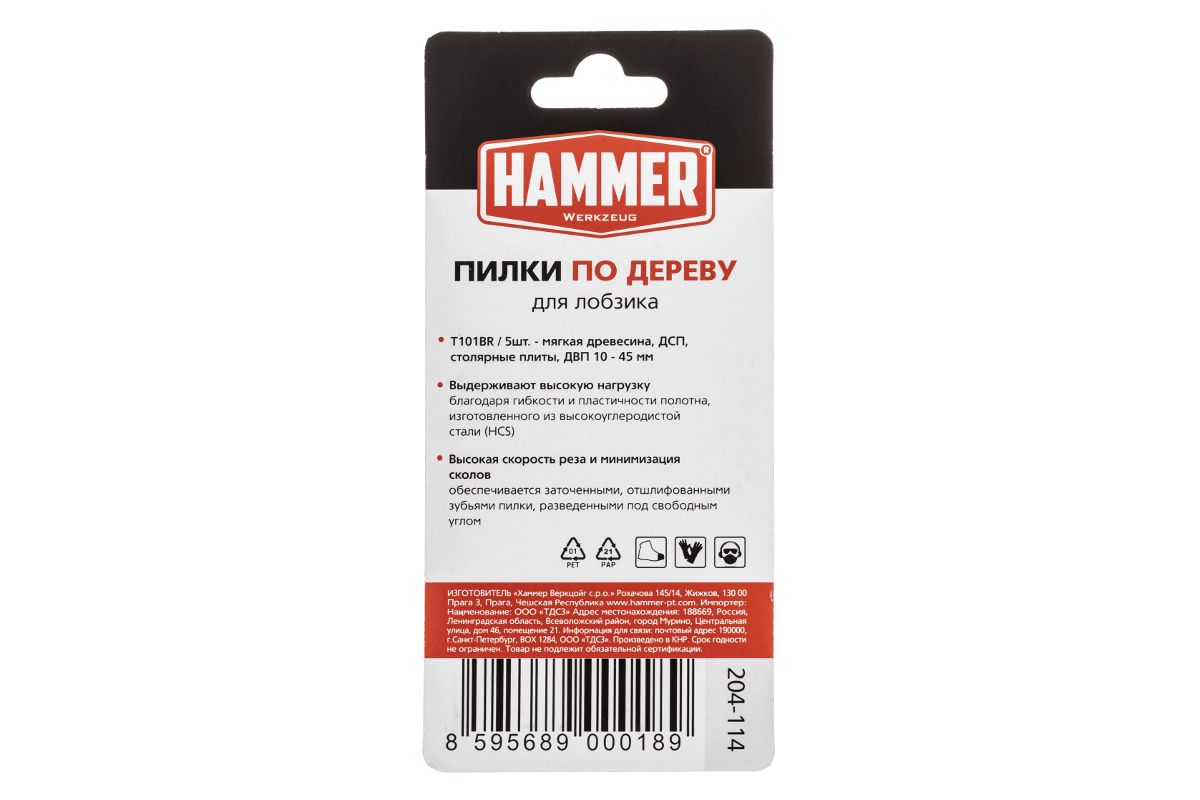 Пилка для лобзика Hammer Flex 204-114 JG WD T101BR дер\пл, 74мм, шаг 2.5, обр.зуб, HCS, 5шт.