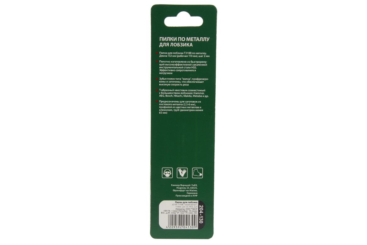 Пилка для лобзика Hammer Flex 204-130 JG MT T318B тонкий металл, 110мм, шаг 2.0, HSS, 2шт.