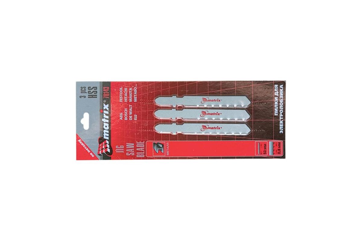Пилки для лобзика MATRIX 78143 по металлу 3шт 50 х 0.8мм hss eu- хвостовик