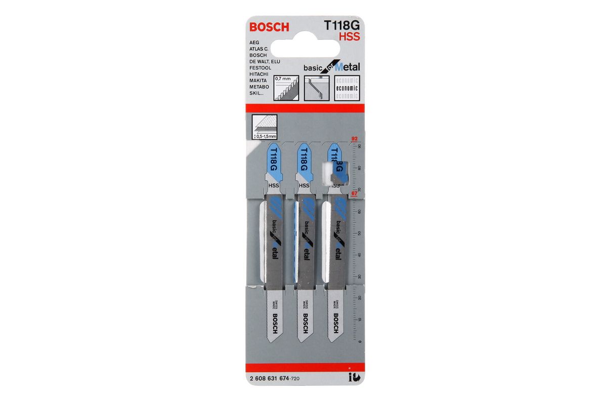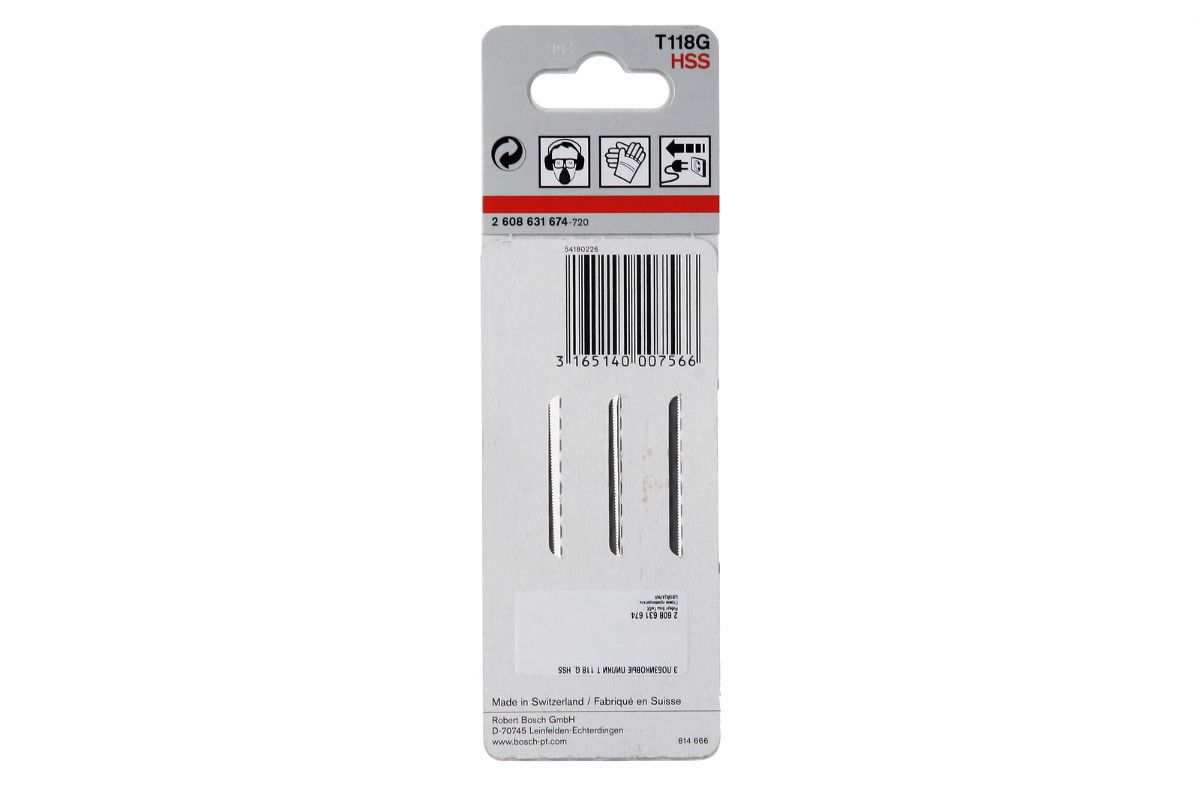 Пилка для лобзика BOSCH T118G (2.608.631.674) металл, 92мм, шаг 0.7, HSS, 3шт