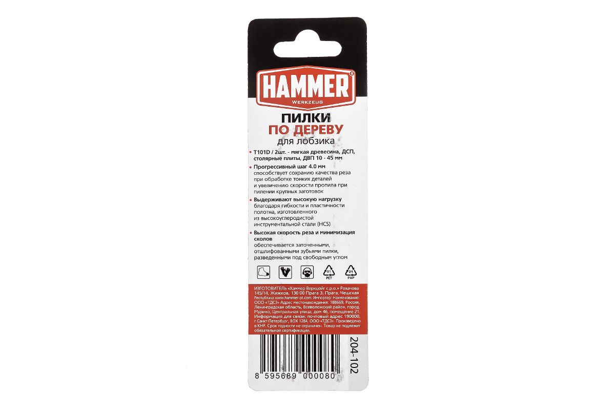 Пилка для лобзика Hammer Flex 204-102 JG WD T101D дерево\пластик, 74мм, шаг 4мм, HCS, 2шт.