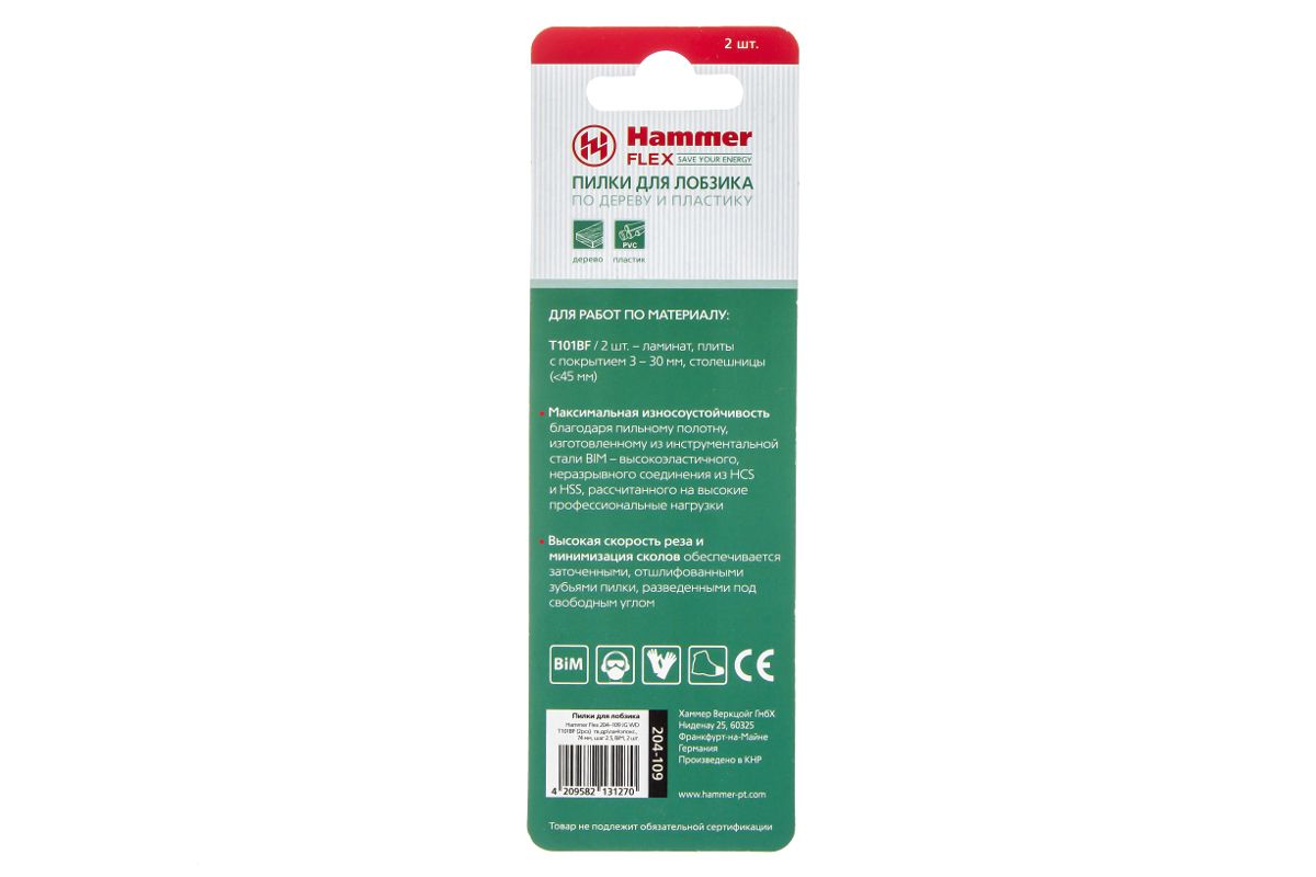 Пилка для лобзика Hammer Flex 204-109 JG WD-PL T101BF (2pcs) тв.др\лам\эпокс., 74мм, шаг 2.7, BiM,