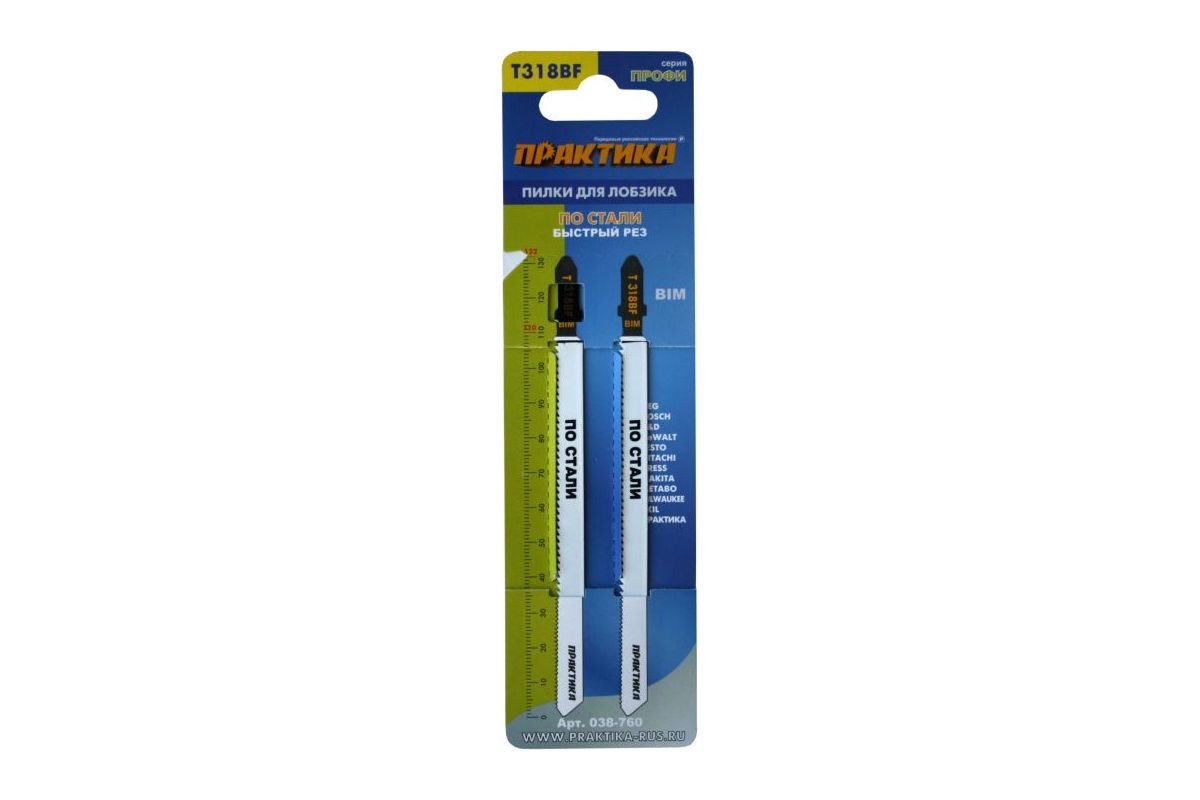 Пилки для лобзика ПРАКТИКА 038-760 T318BF, биметаллические удлиненные по металлу, 2шт.