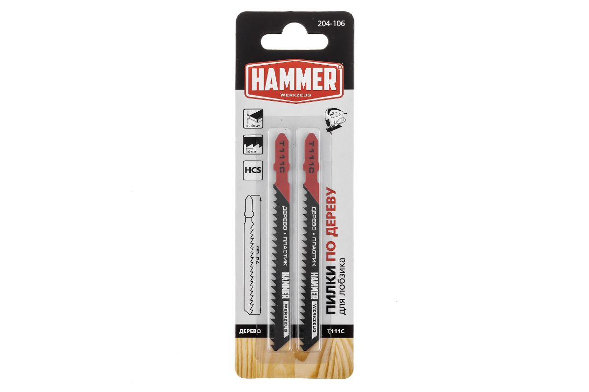 Пилка для лобзика Hammer Flex 204-106 JG WD-PL T111C мягк.дер\пл, 74мм, шаг 3.0, HCS, 2 шт.