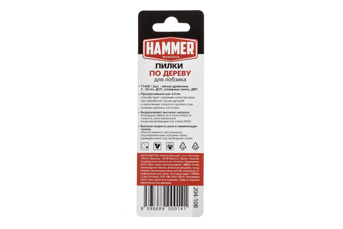 Пилки для лобзика HAMMER JG WD-PL T144D (2шт.)
