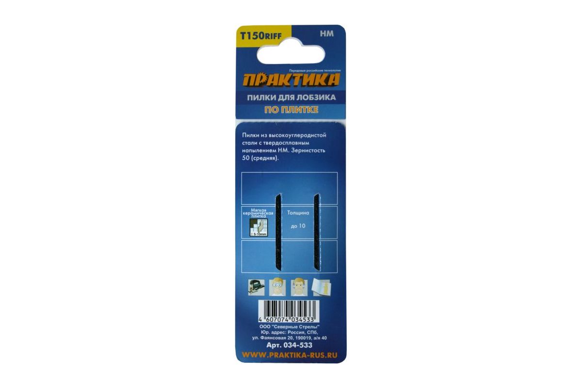 Пилки для лобзика ПРАКТИКА 034-533 T150RIFF, карбидвольфрамовые по плитке, 2шт.