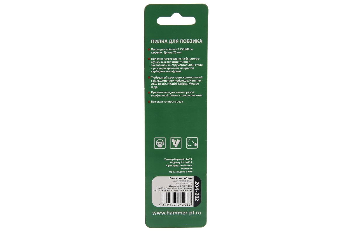 Пилка для лобзика Hammer Flex 204-202 JG CB T150Riff твердые материалы, 75мм, Тип А, 50CS+YG8