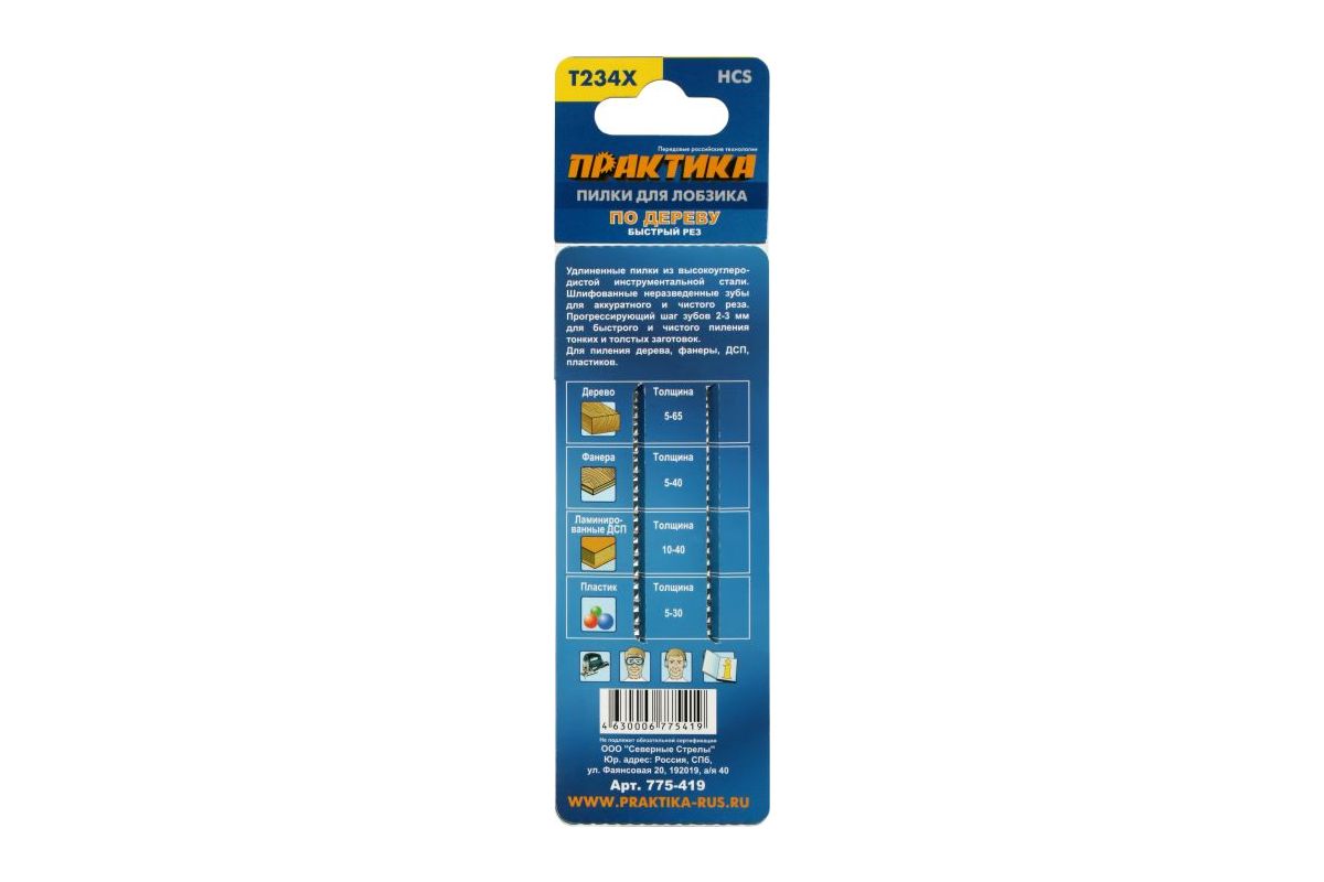 Пилки для лобзика ПРАКТИКА 775-419 T234X Progressor, по дереву, 2шт.