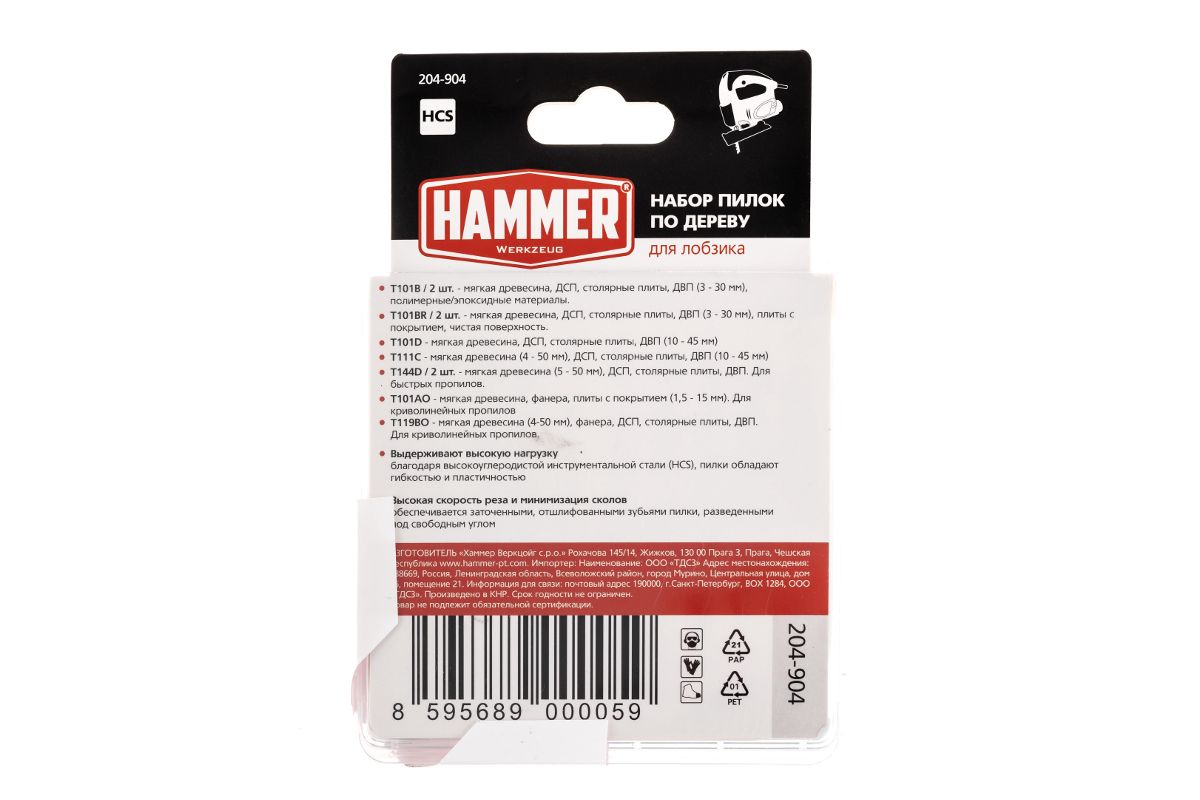 Пилка для лобзика (набор) Hammer Flex 204-904 JG WD-PL набор No4 дерево\пластик 7 видов, 10шт