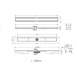 Трап BERGES В1 Antik 900, d=50 мм, 900 x 61 мм, линейный, боковой выпуск, матовый хром
