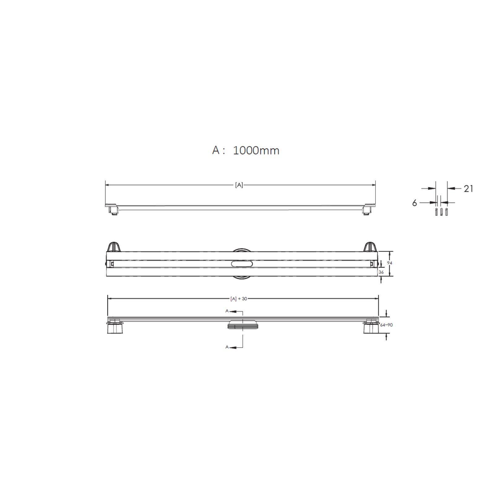 Трап BERGES SUPER Slim 1000, d=50 мм, 1000 x 24 мм, линейный, боковой выпуск, хром глянец