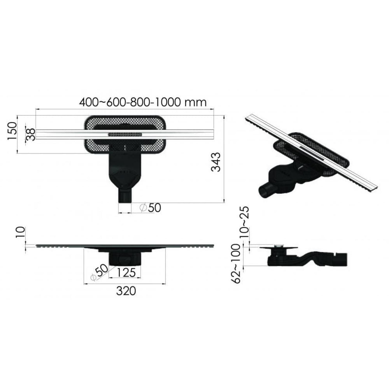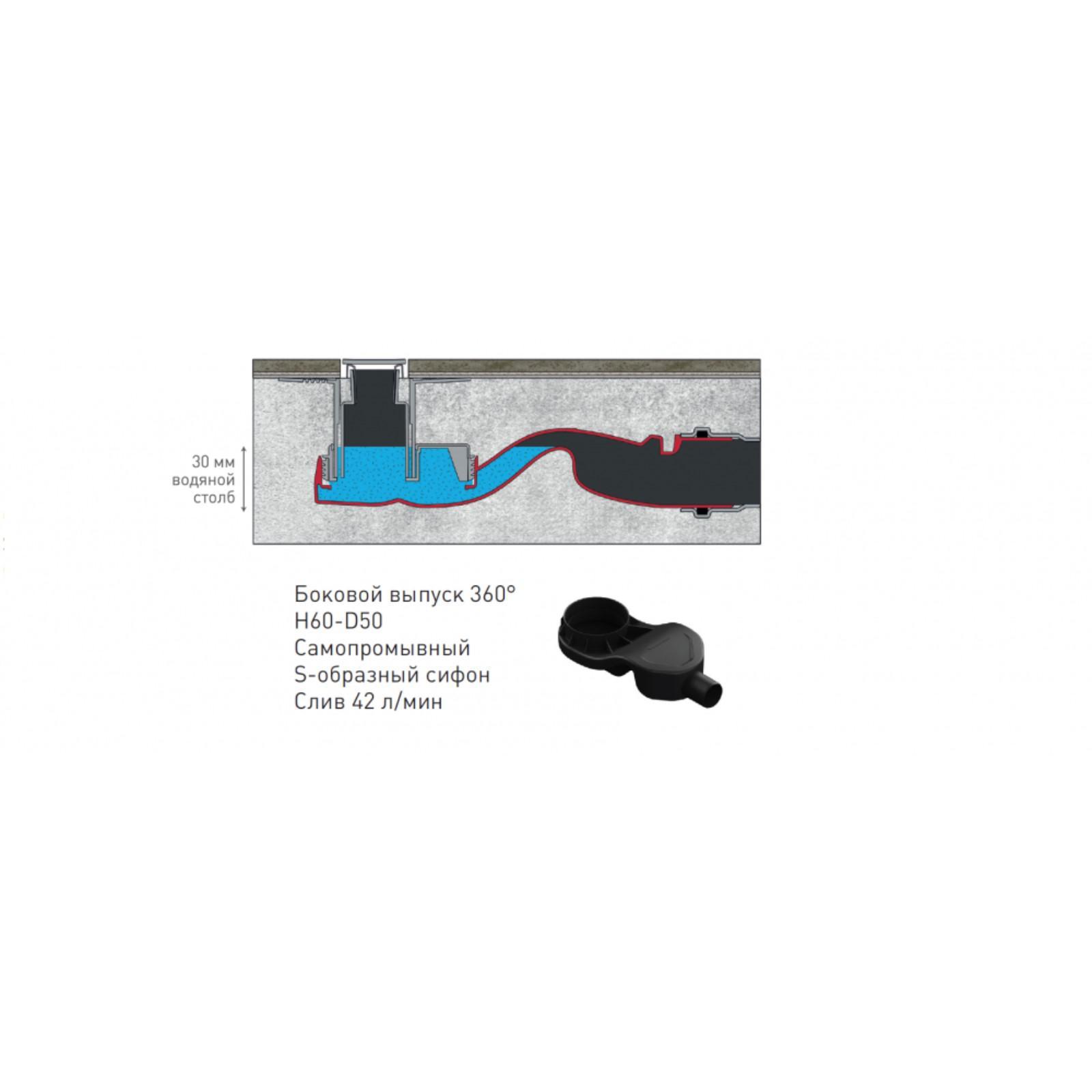 Трап BERGES SIMPEL 1000, d=50 мм, 1000 x 45 мм, линейный, боковой выпуск, золото глянец