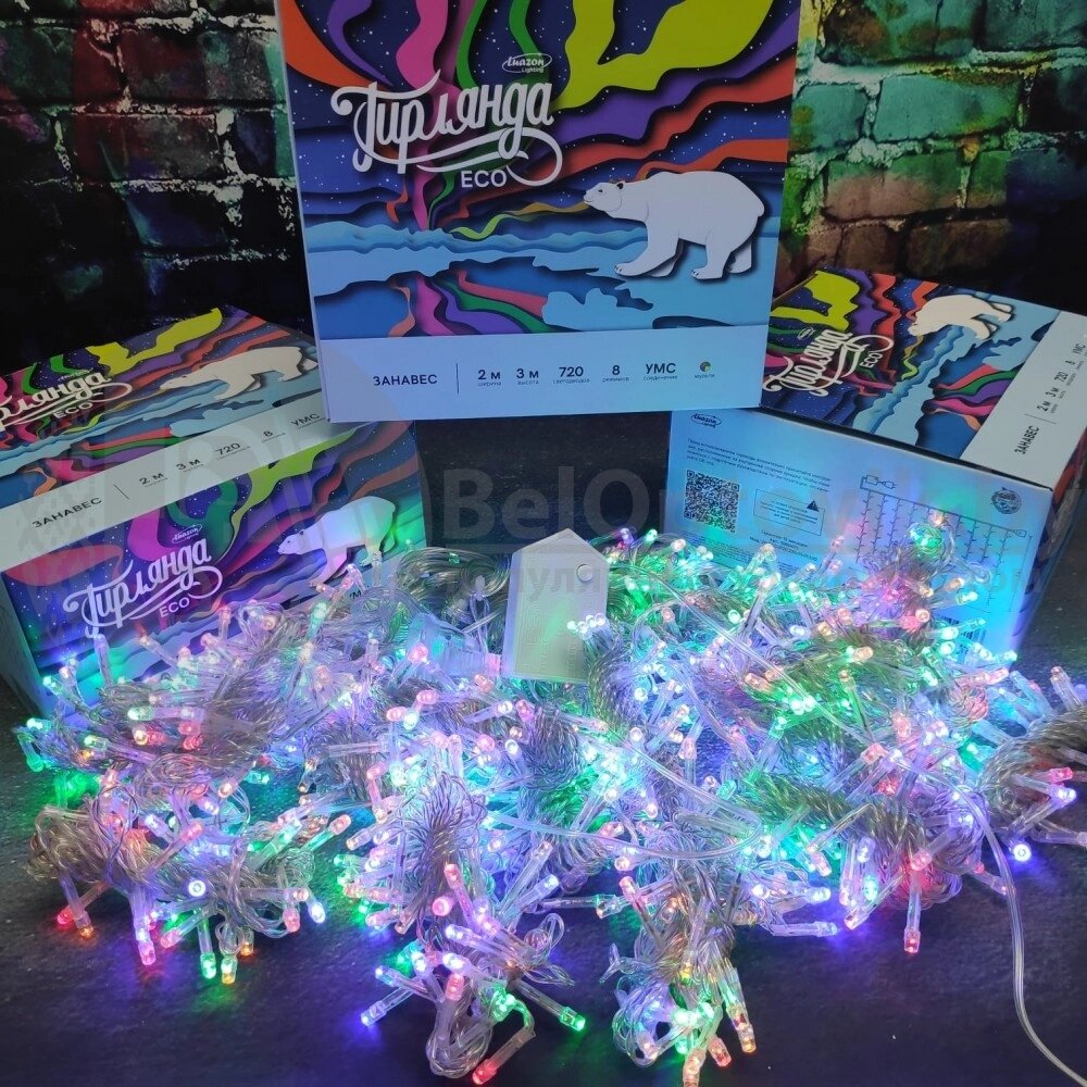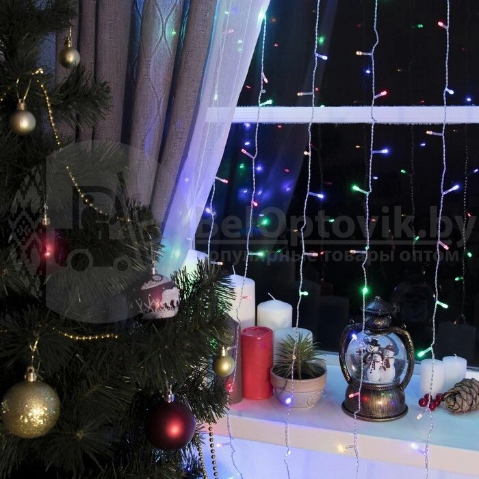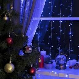 Гирлянда Занавес 2 х 3 м, IP20, прозрачная нить, 720 LED, 8 режимов, 220 В Синее свечение