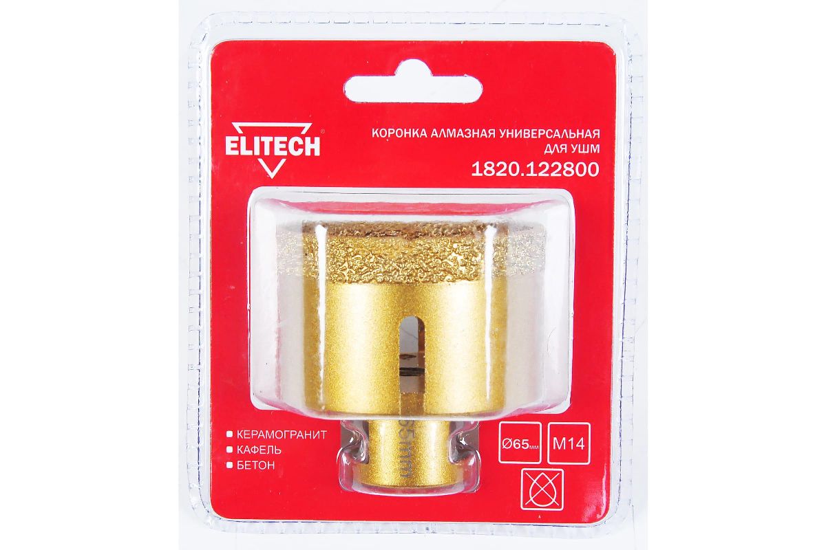 Коронка алмазная ELITECH 1820.122800 универсальная для ушм 65мм х м14
