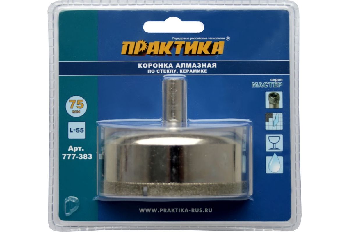 Коронка алм. ПРАКТИКА 777-383 75мм, 1шт., по стеклу и керамике