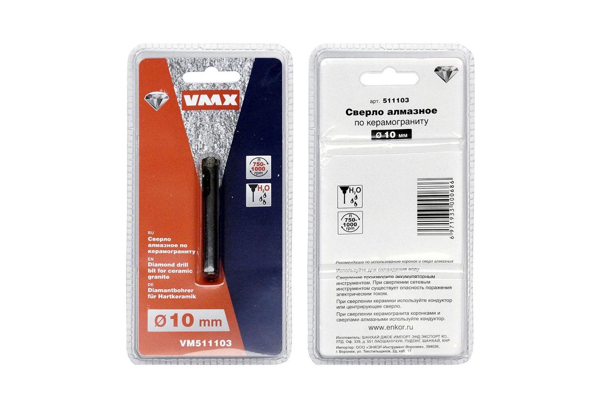 Сверло д/керамогранита VMX 511103 ф10мм алмазное мокр. рез