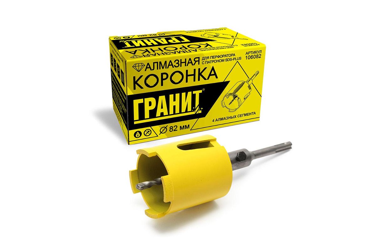 Коронка алмазная ГРАНИТ 106082 по бетону SDS-plus D 82 мм с хвостовиком и центр.сверлом