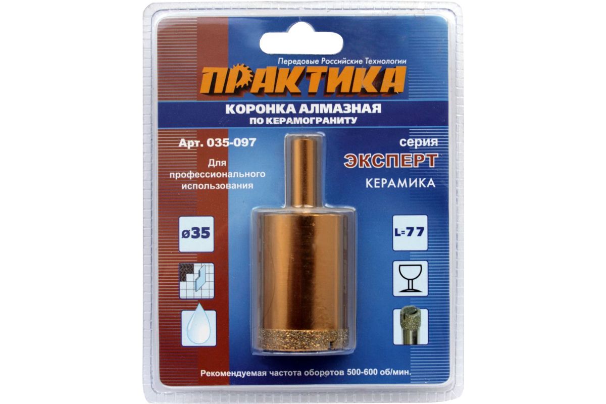 Коронка алмазная ПРАКТИКА Ф35х77мм цилиндрический "Эксперт" (035-097)