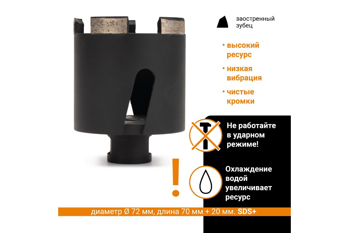 Коронка алмазная VIRA RAGE 559227 по бетону 72мм