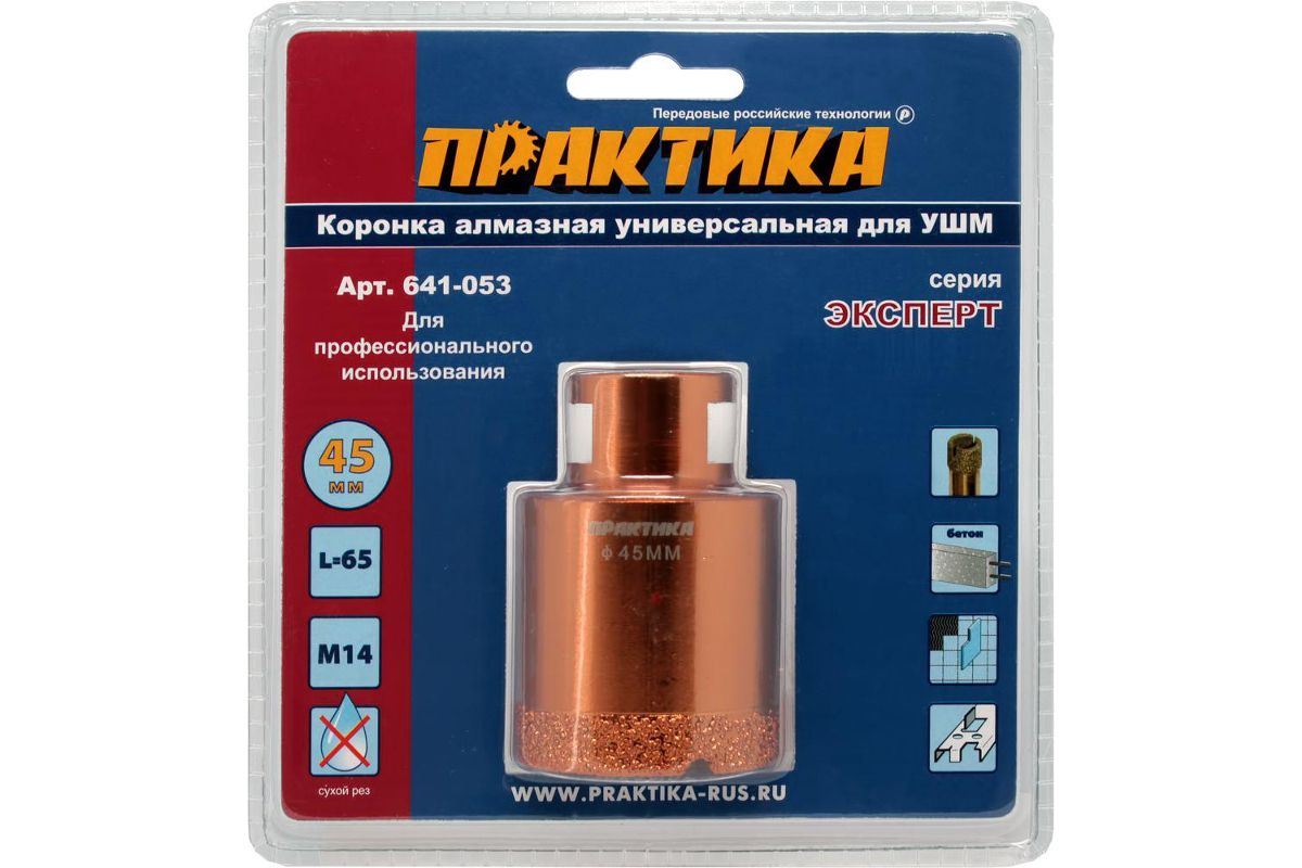 Коронка алм. ПРАКТИКА 641-053 45мм, М14, универсальная, для УШМ