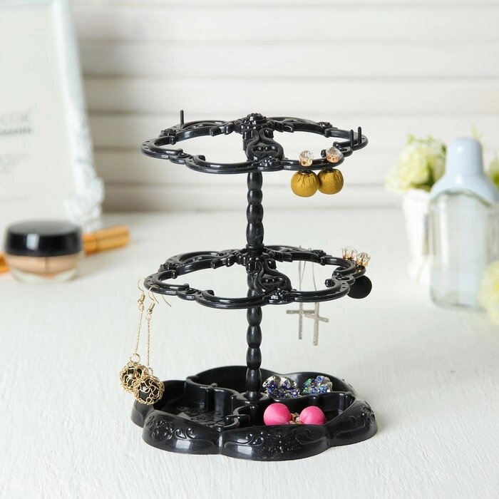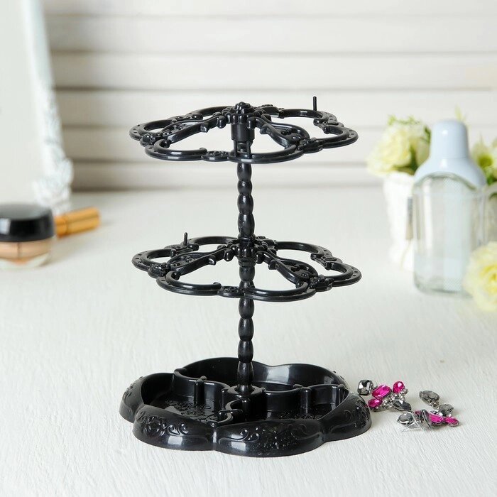 Подставка под серьги "Лепестки" 14,5*14,5*17 см, 2 яруса, цвет чёрный