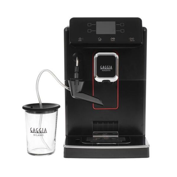 Кофемашина GAGGIA MAGENTA MILK BK 8701/01 умеет готовить 9 напитков, в том числе с добавлением молока. Встроенная кофемолка с керамическими жерновами быстро измельчает кофейные зерна без искажения вкусовых свойств и естественного аромата. Особая система приготовления молочной пенки с прозрачной емкостью 500 мл обеспечивает исключительное качество напитка и отсутствие брызг. Для управления доступными параметрами установлена панель с дисплеем и сенсорными кнопками. Из особенностей модели GAGGIA MAGENTA MILK BK 8701/01 отмечаются автоматическая декальцинация, противокапельная система, контроль крепости кофе и порции воды.