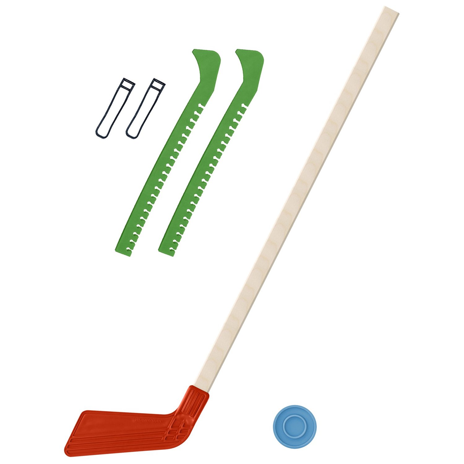 Набор для хоккея Задира Клюшка красная 80 см + шайба + Чехлы для коньков зеленые КЛ+ШК+ЧехлыЗ