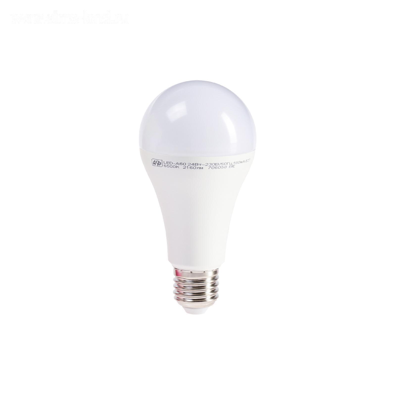УЦЕНКА Лампа светодиодная ASD LED-A60 (А65)-standard, Е27, 24 Вт, 230 В, 6500 К, 2160 Лм