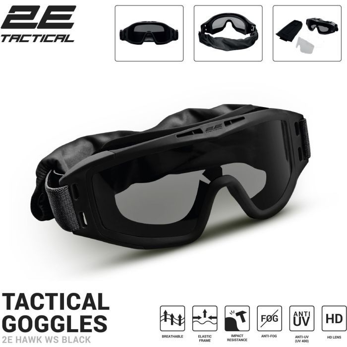 Тактичні окуляри 2E Hawk WS Black Anti-fog + сумка + 3 лінзи (2E-TGGWS-BK)