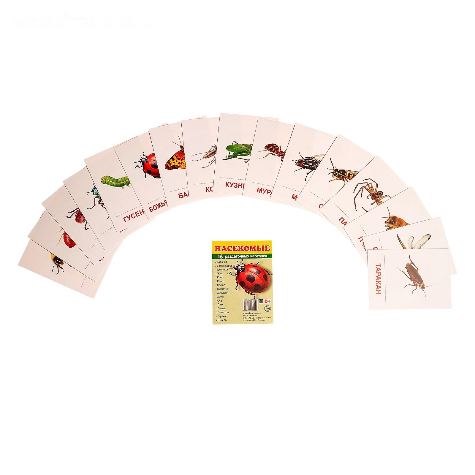 Карточки обучающие "Насекомые" 16 шт., 6,3 х 8,7 см
