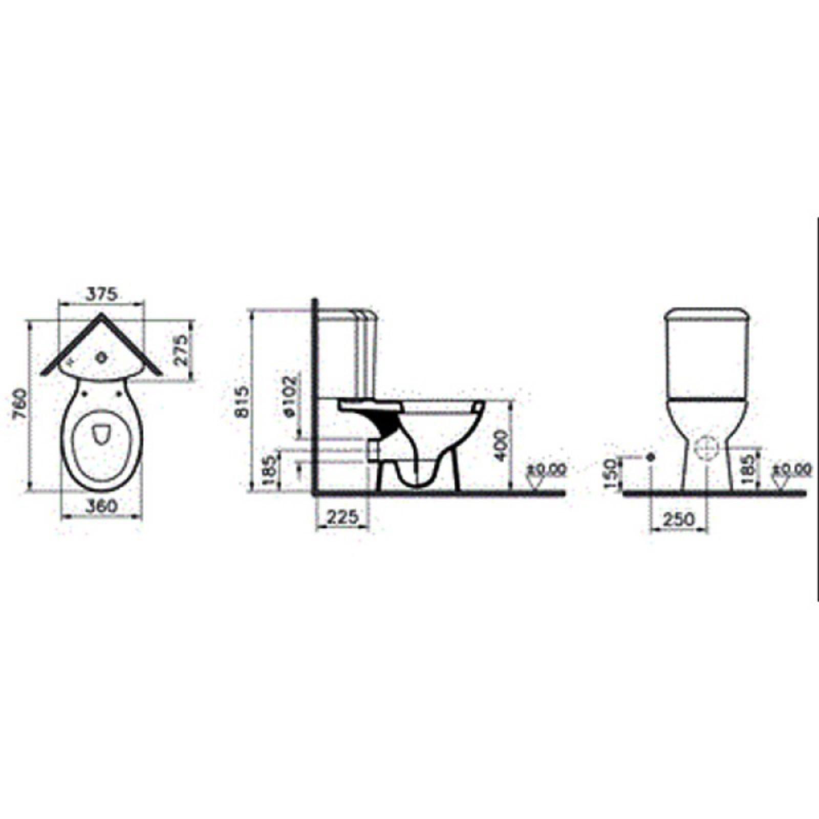 Унитаз-компакт Rosa "Браво" 023-5403, нижняя подводка, горизонтальный выпуск, цвет белый