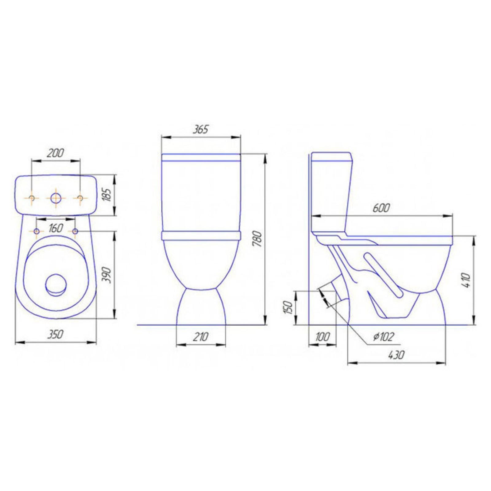 Унитаз-компакт Rosa "Комфорт" 023-1359, нижняя подводка, косой выпуск, цвет белый