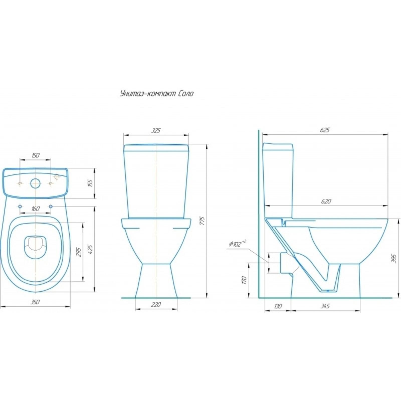 Унитаз-компакт Rosa "Соло Люкс" 023-3095, нижняя подводка, горизонтальный выпуск, цвет белый 75000
