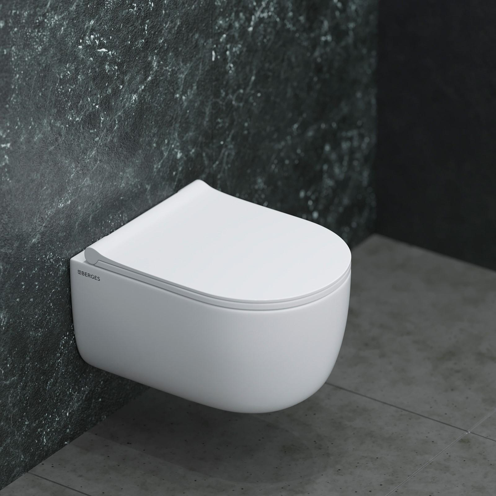 Унитаз подвесной BERGES EGO Rimless 082111, сиденье дюропласт, м/лифт, белый