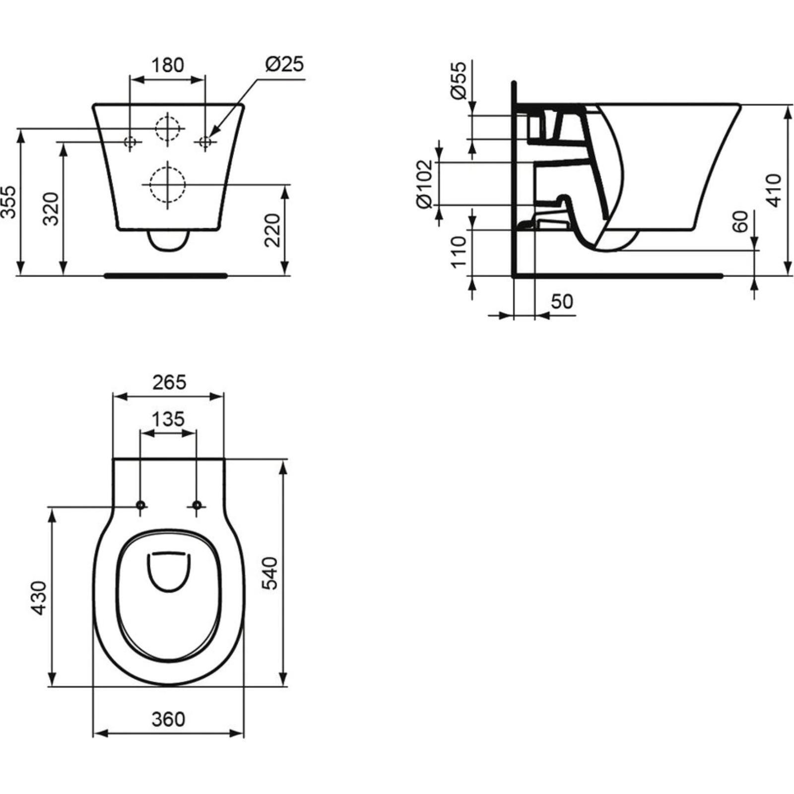 Унитаз подвесной Ideal Standard CONNECT AIR AquaBlade E005401, без сиденья, белый