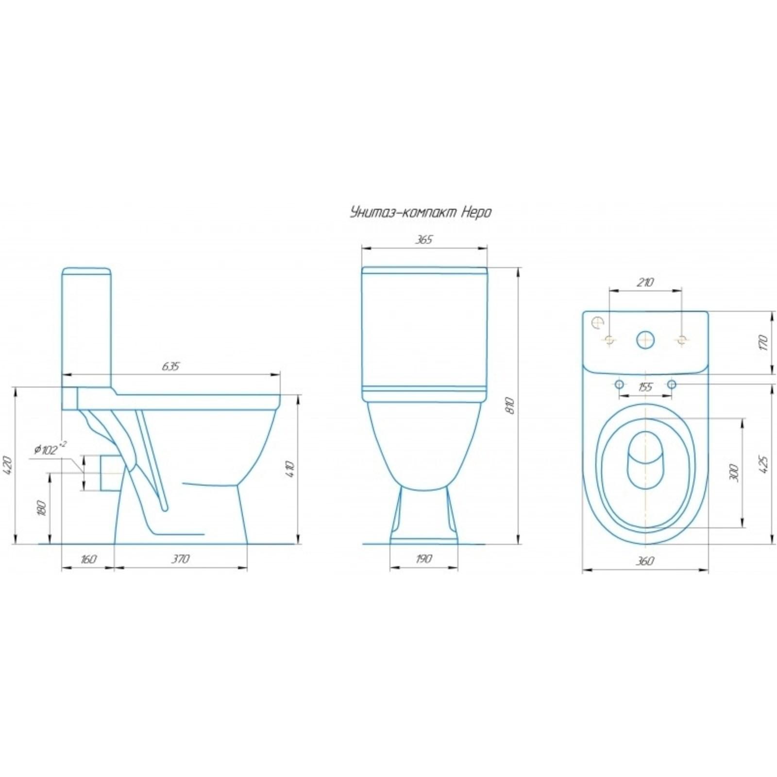 Унитаз-компакт Rosa "Неро Люкс" 023-3097, нижняя подводка, горизонтальный выпуск, белый
