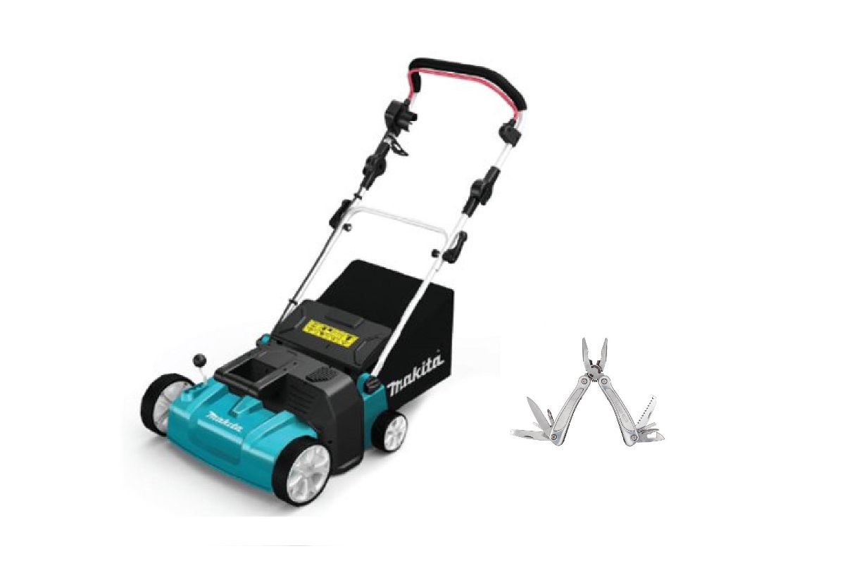 В состав набора входят: Скарификатор MAKITA UV3600 1800Вт шир.реза 36см выс.реза -10...+5мм 40л, Мультитул BAHCO MTT051 12 в 1 260г чехол