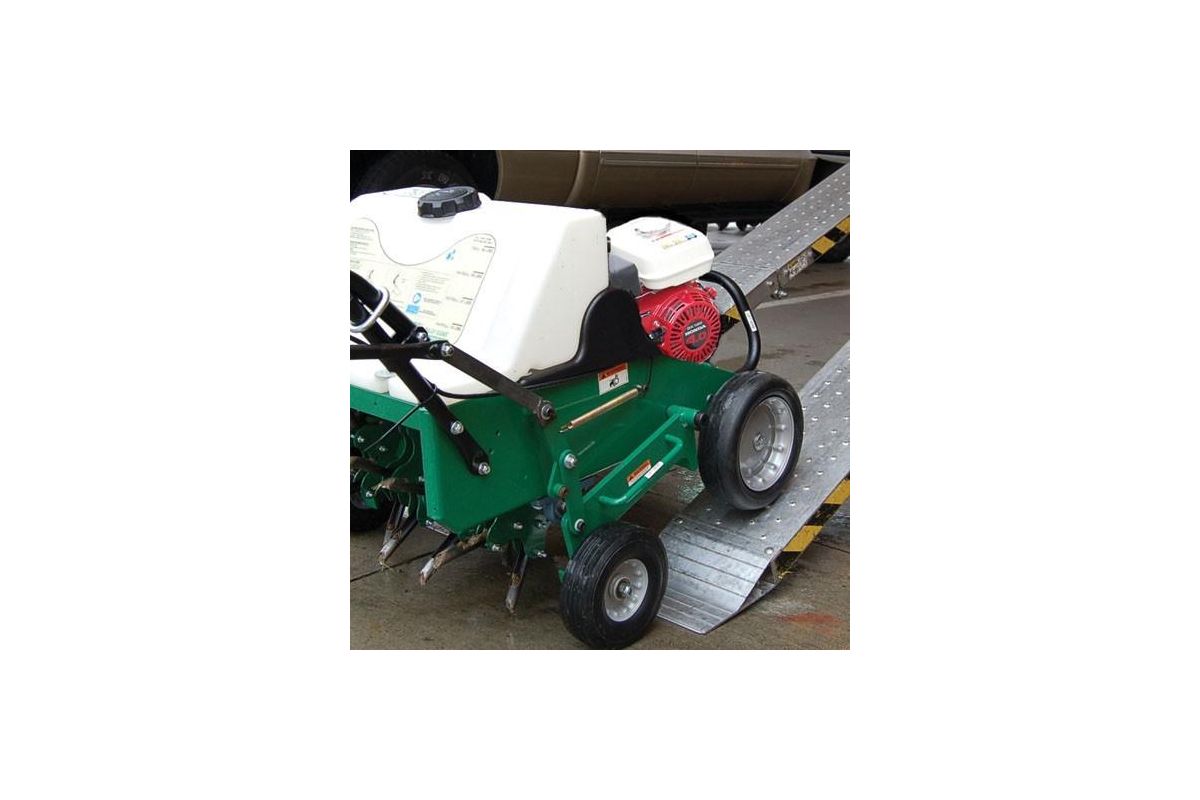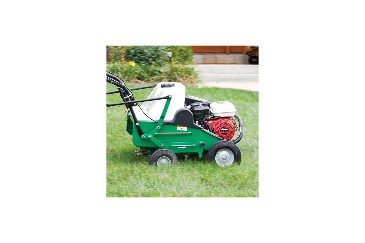 AE401 Аэратор, двигатель B&S (Intek OHV) мощностью 5,5 л.с., ширина захвата 46 см, ножи из высокопрочной стали, глубина обработки - до 7 см, размер лап - 11,5х18 см, размер пальцев - 1,6х6,5 см, производительность до 2700 кв.м/час, стальной корпус, стальная защита подшипников вала, удобная складная ручка, износостойкая окраска, высокопрочные колеса (с резиновыми покрышками) на подшипниках, бункер для воды объемом 22,5 л, сухой вес 110 кг, цвет - зеленый/чёрный
