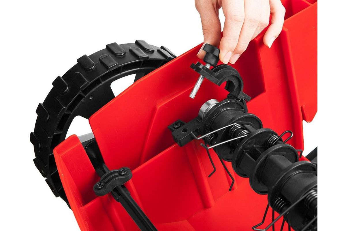 Облегченные колеса большого диаметра и эргономичная рукоятка облегчают перемещение изделия по газону;